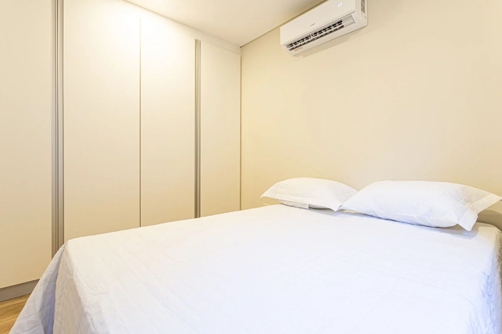 Dormitorio con cama somier, AA, TV Smart de 42”