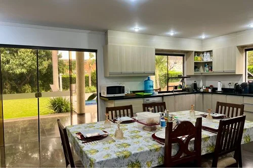Casa amoblada en alquiler Monte Sol Country, Luque Elegancia, comodidad y ubicación privilegiada. Esta casa de dos plantas se encuentra a minutos del Aeropuerto y del Eje Corporativo. Características del inmueble: Casa de 2 plantas totalmente amoblada Planta baja: * Amplia sala * Cocina equipada * Bar * Baño social * Escritorio * 1 habitación Exterior: * Gran jardín * Piscina * Quincho con parrilla * Estacionamiento para 4 a 5 vehículos Planta alta: * Estar íntimo con salida al balcón * 4 habitaciones en suite
