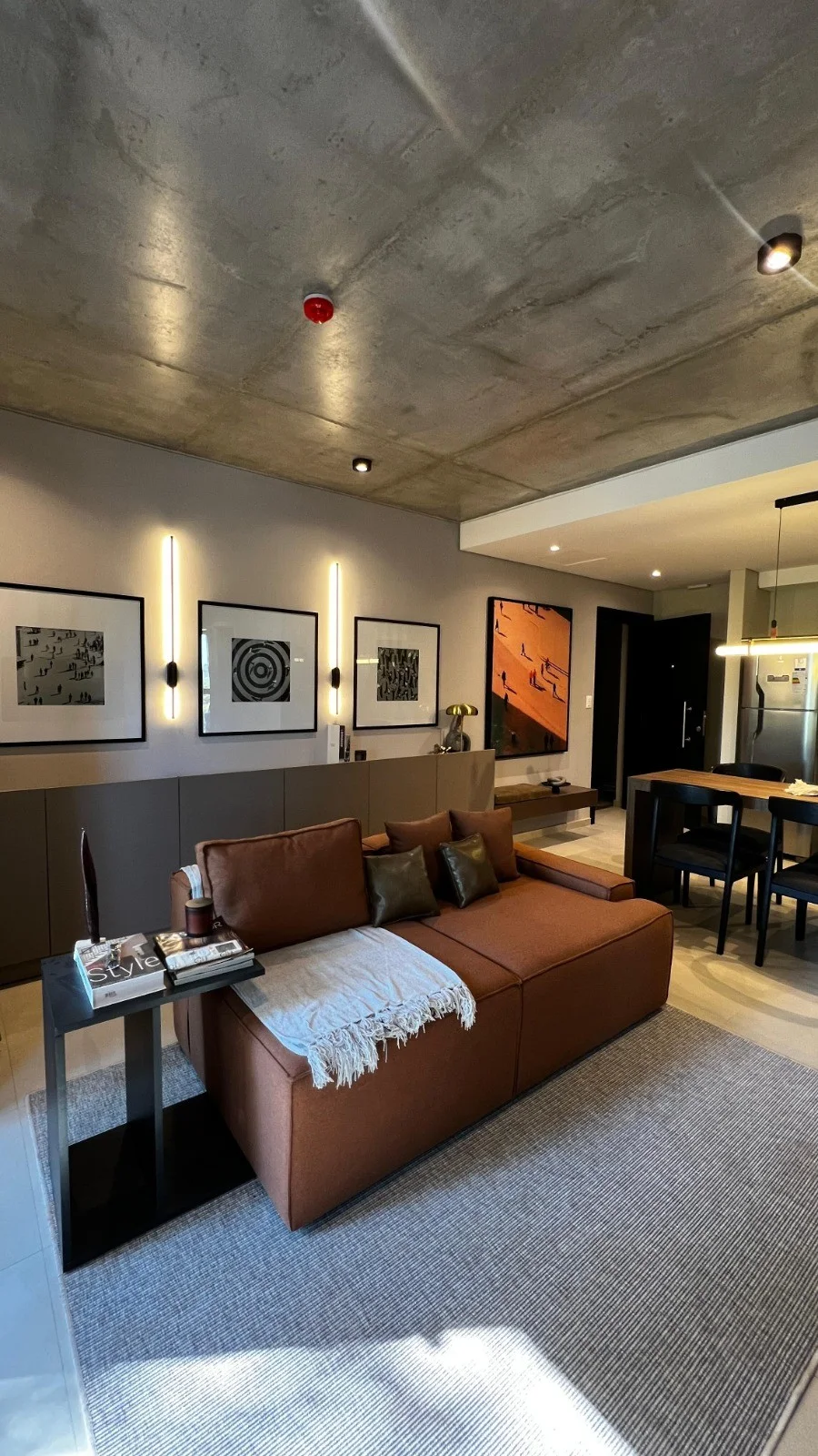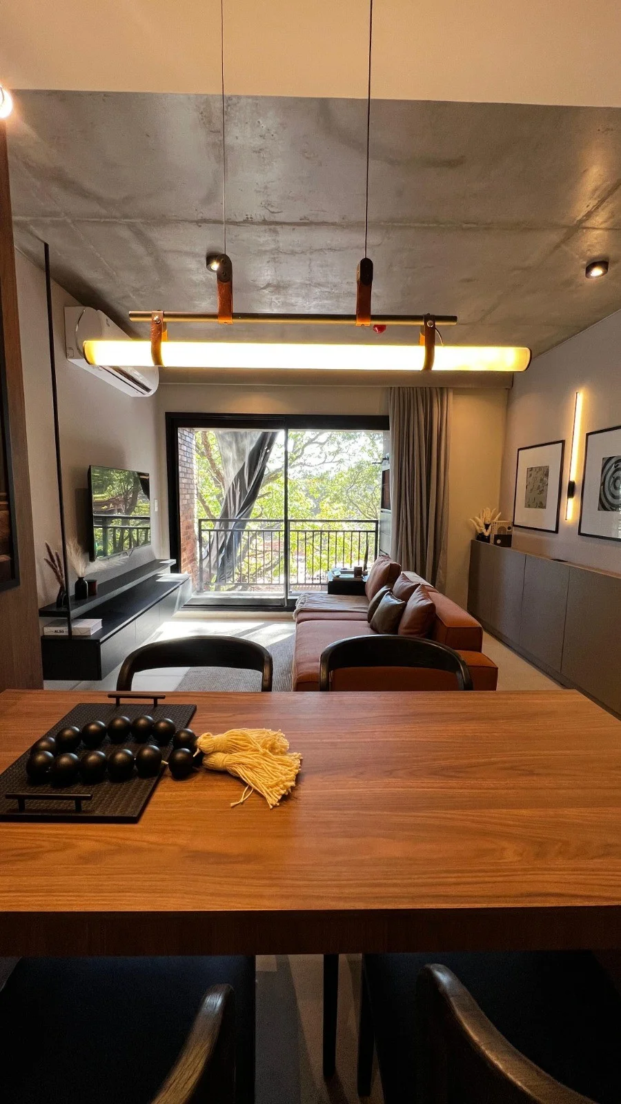 Living social con cocina integrada, balcon con parrilla
