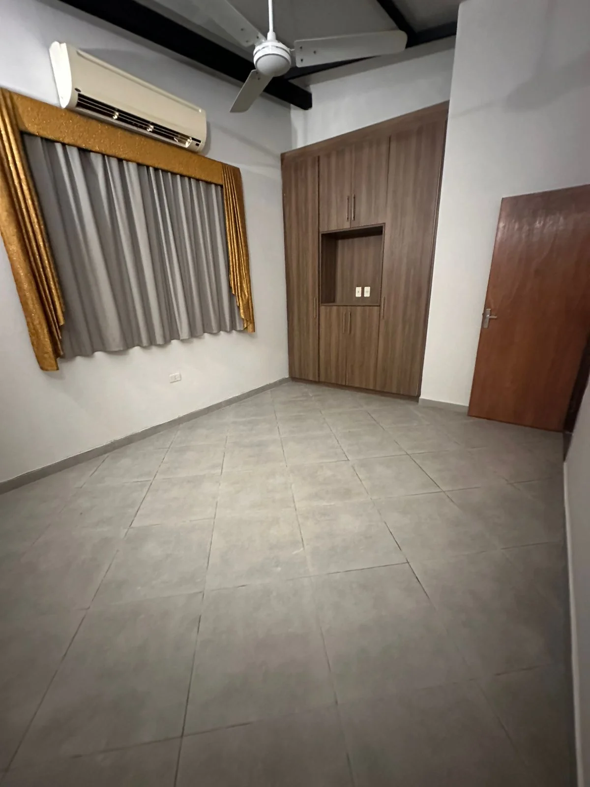 3 habitaciones con aire acondicionado, ventilador de techo y roperos.