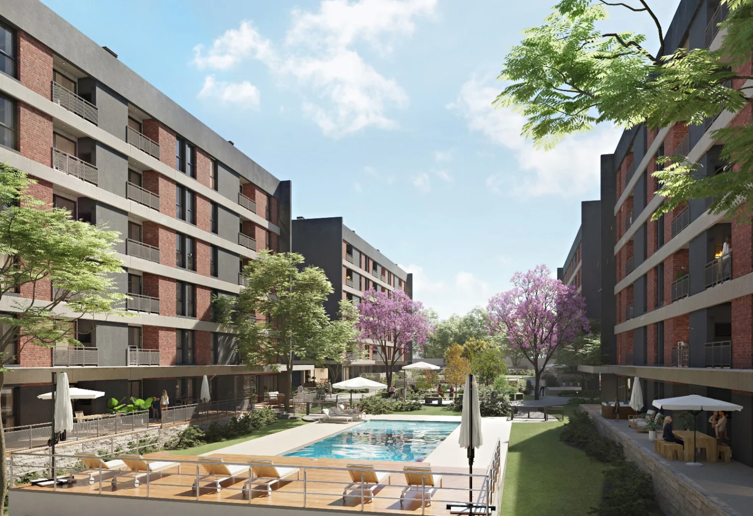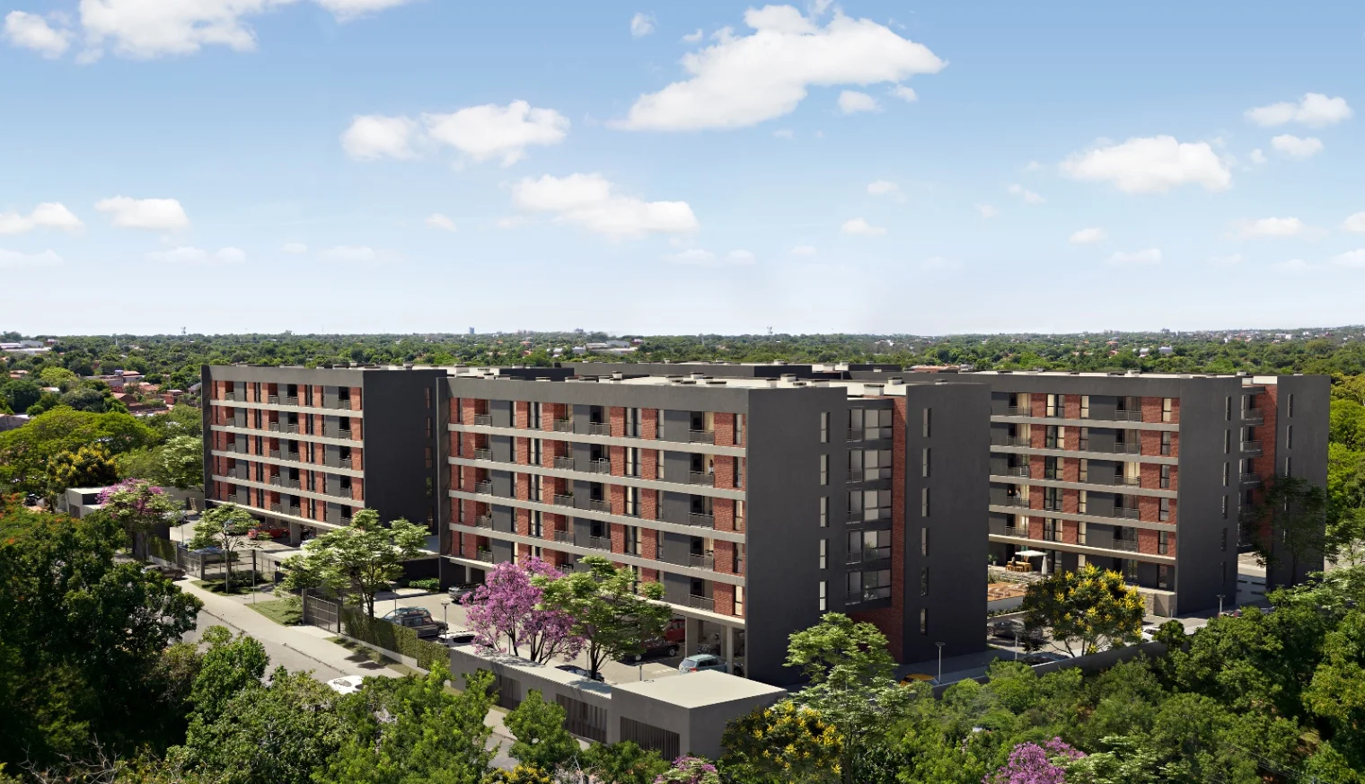 Proyecto desarrollado en un terreno de 12.000 m², con amplios espacios verdes y excelente calidad constructiva.
