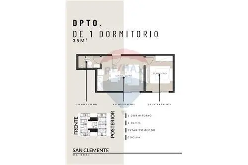 Edificio San Clemente Santa Teresa con inversión del Departamento de 1 Dormitorio 43,200USD en Piso10
