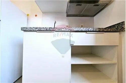 Cocina equipada, placa, heladera y extractor.