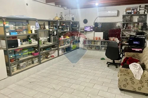Garaje para varios vehículos, 3 oficinas, 1 baño, amplio salón, depósito y un sector posterior con segundo piso abierto.