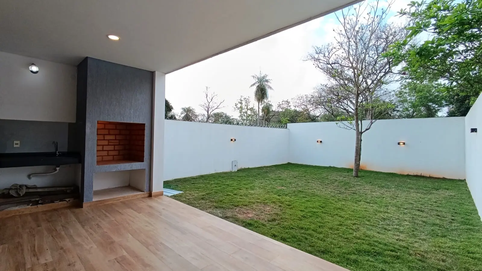 Patio con césped y árboles