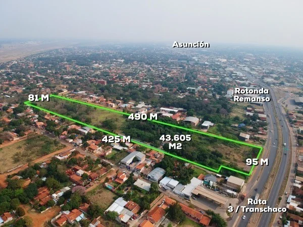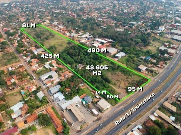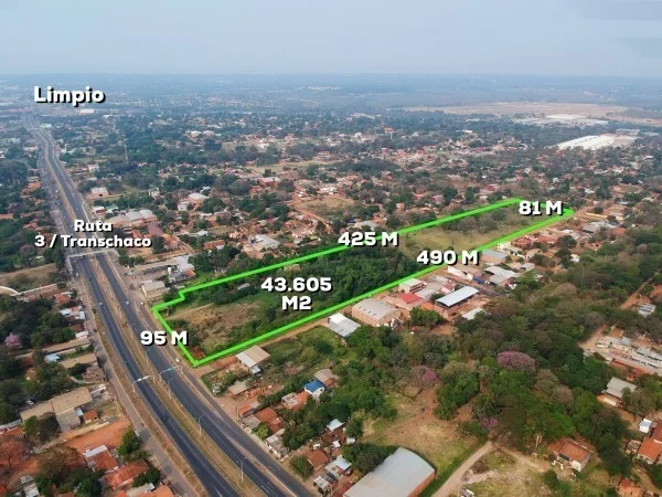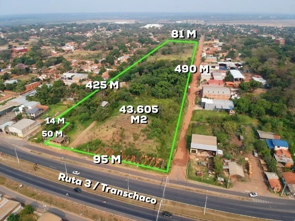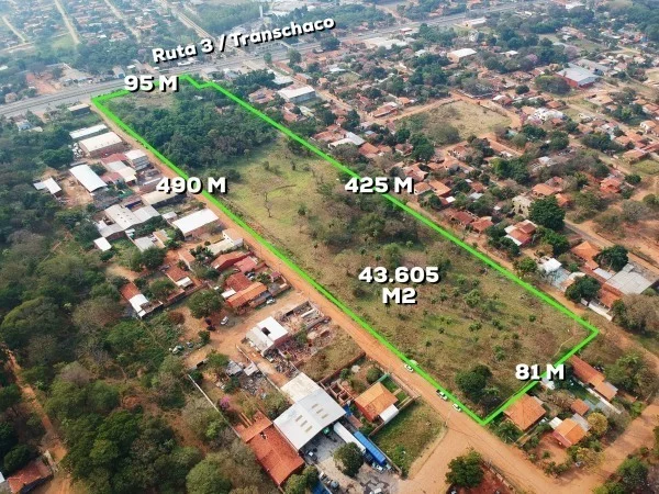 3 lotes juntos con medidas de 95 mts sobre la transchaco, 490 mts. sobre calle transversal, 425 de fondo lado opuesto y 81 mts. su contrafrente