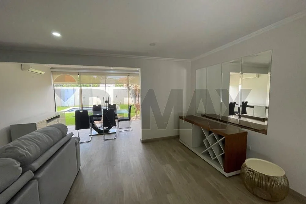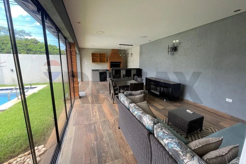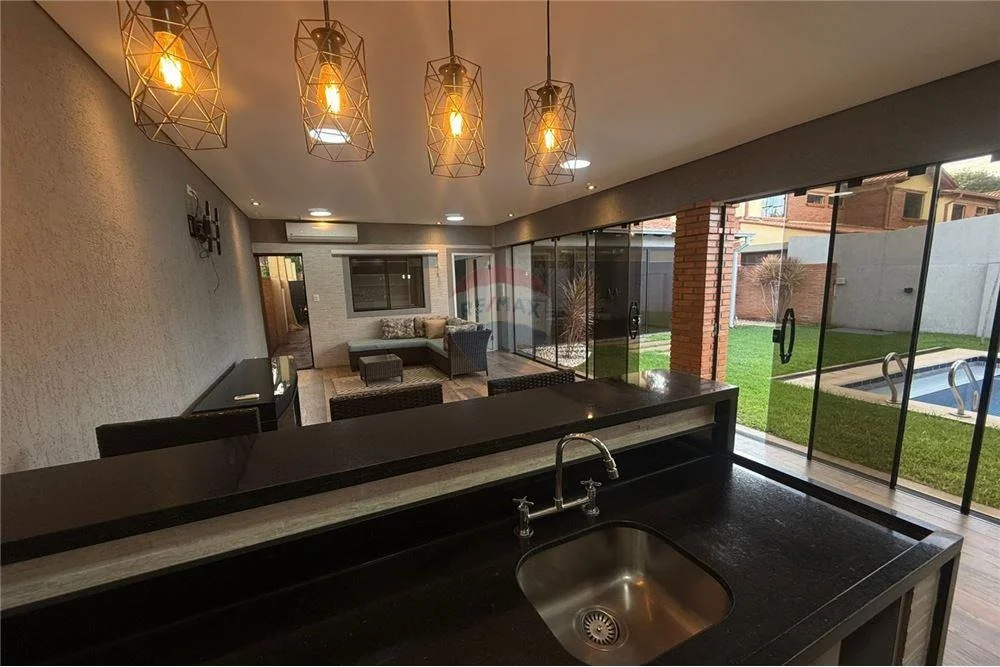 - sala, comedor, quincho cerrado con Blindex templado, todo integrado, parrilla revestida en acero inoxidable con espadines giratorios de inox, piso porcelanato en toda la Planta, cocina amoblada con mesada, amplio lavadero con habitación de servicio, zona de tendedero, deposito, baño social, baño de servicio.