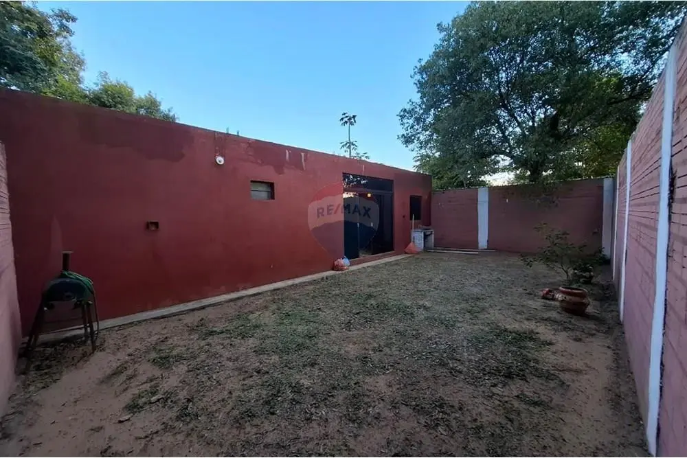 Propiedad completamente amurallada, con amplio patio al frente para al menos 6 vehículos, puertas de vidrio templado que dan acceso a la sala comedor con desayunador y una con una hermosa parrilla, y luego se encuentra la habitación y el baño.