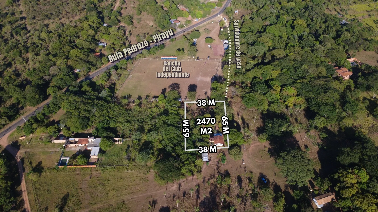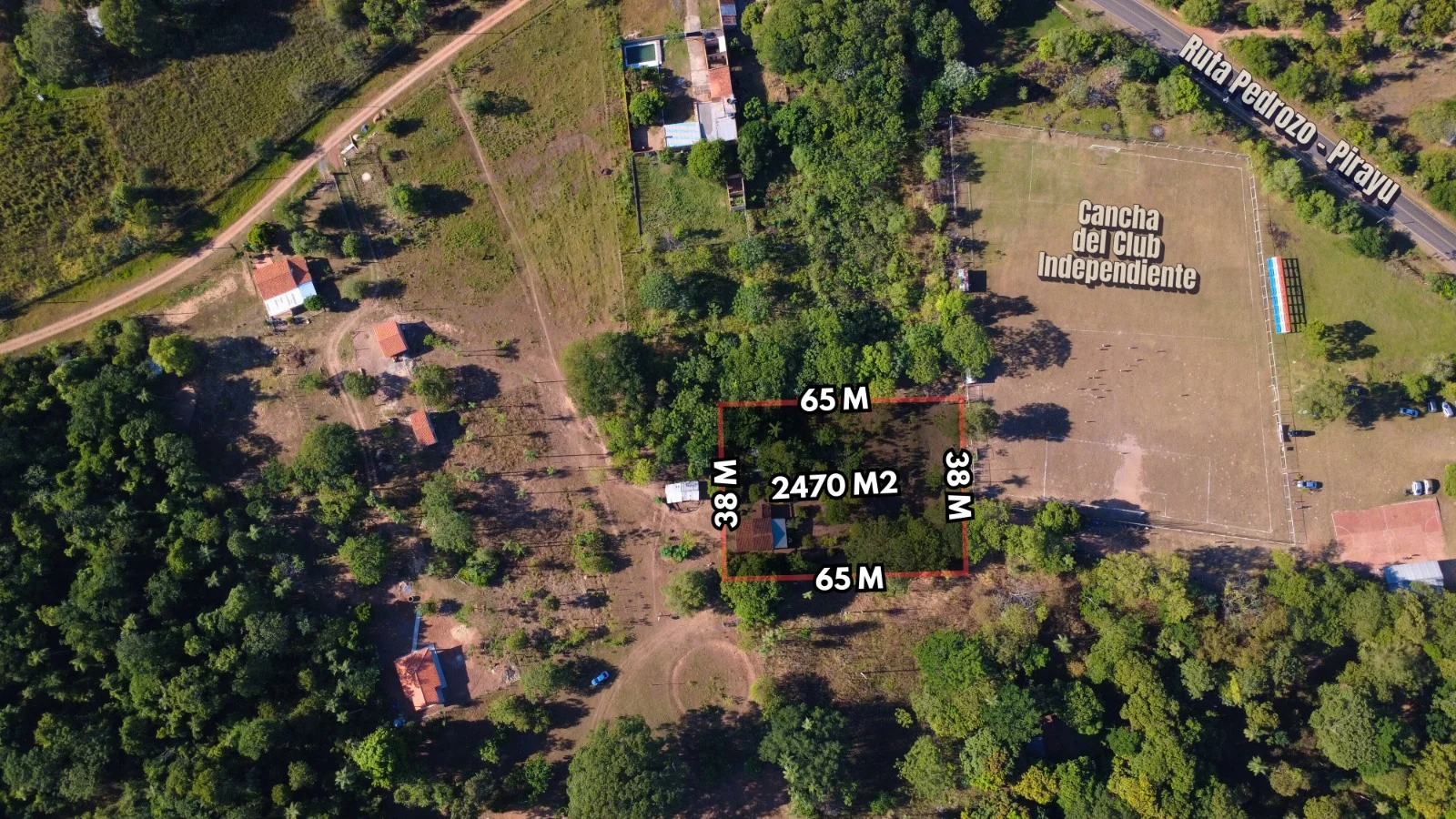 Ubicación estratégica detrás de la cancha independiente y sobre la ruta Pedrozo - Pirayu.