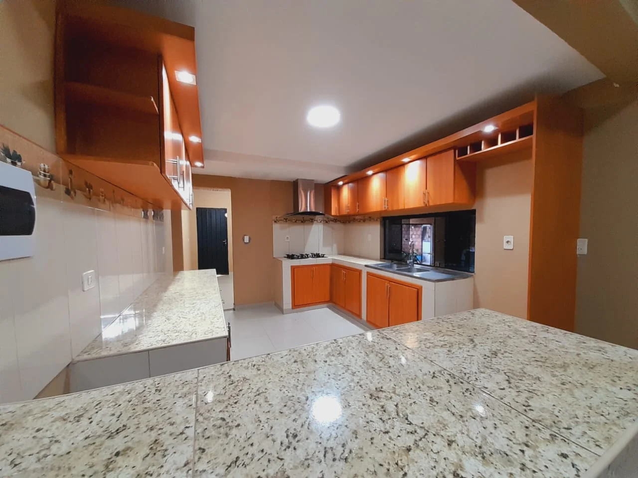 * Amplio quincho cerrado con parrilla de acero inoxidable, mesada de granito, y barra.