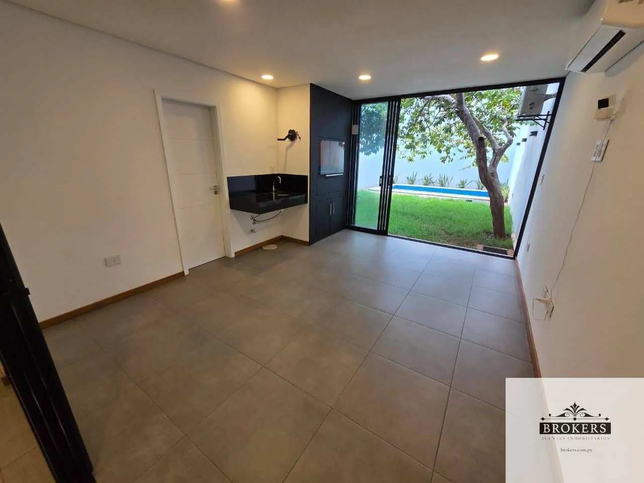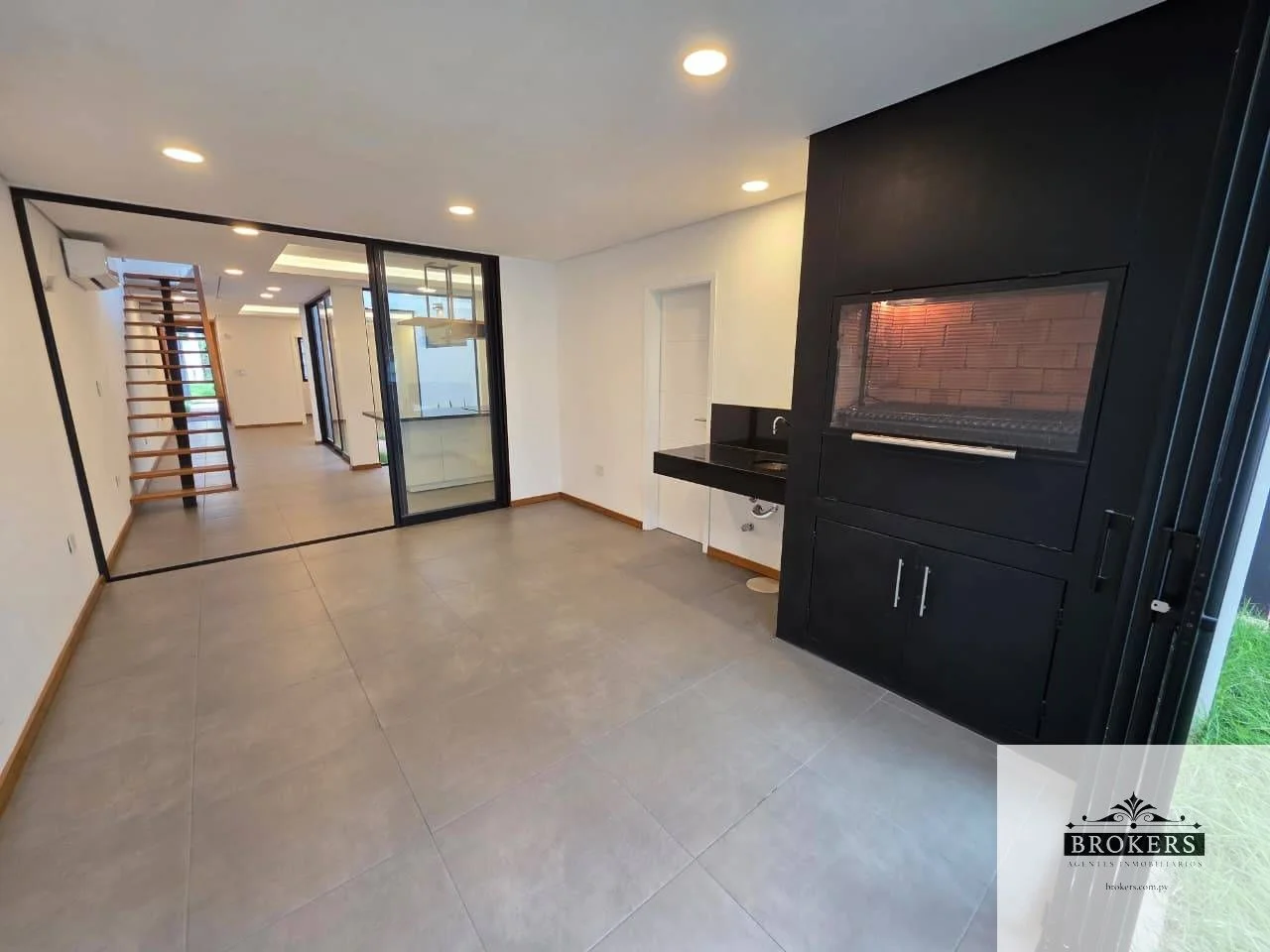 Planta Baja: Cochera Techada para hasta 4 vehículos, Baño Social, Living-Comedor Social, Escritorio, Jardín Interno Tragaluz Cocina Semi Independiente de estilo abierto con Desayunador (Incluye Anafe, Horno y Purificador) Galería Cerrada y Climatizada con Parrilla (con extractor), piscina, Jardin, Lavadero, Área de Servicio (Dormitorio y Baño)