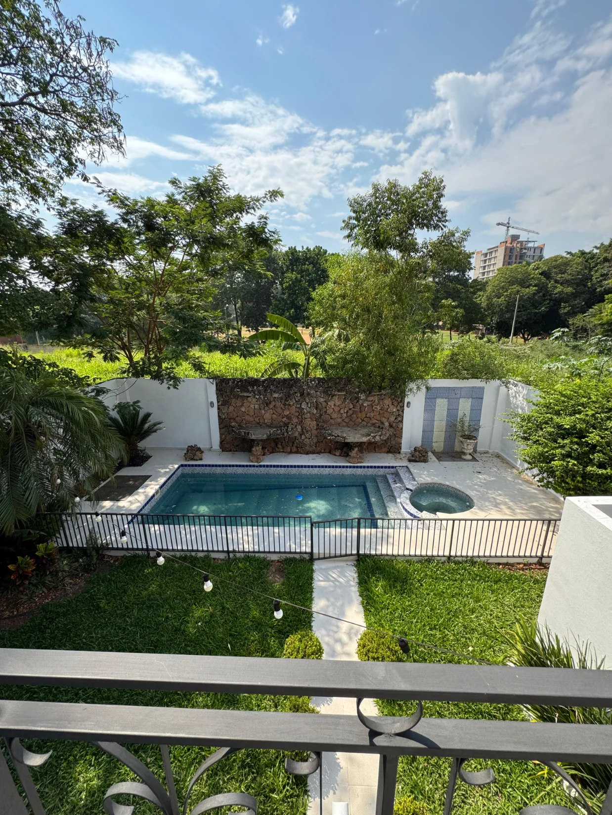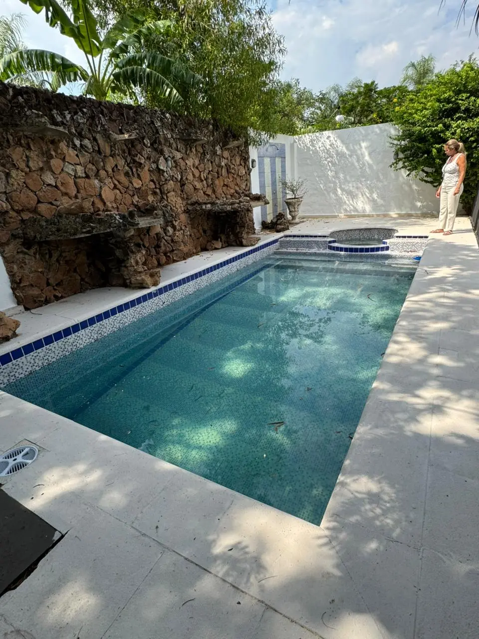 Piscina con cascada.