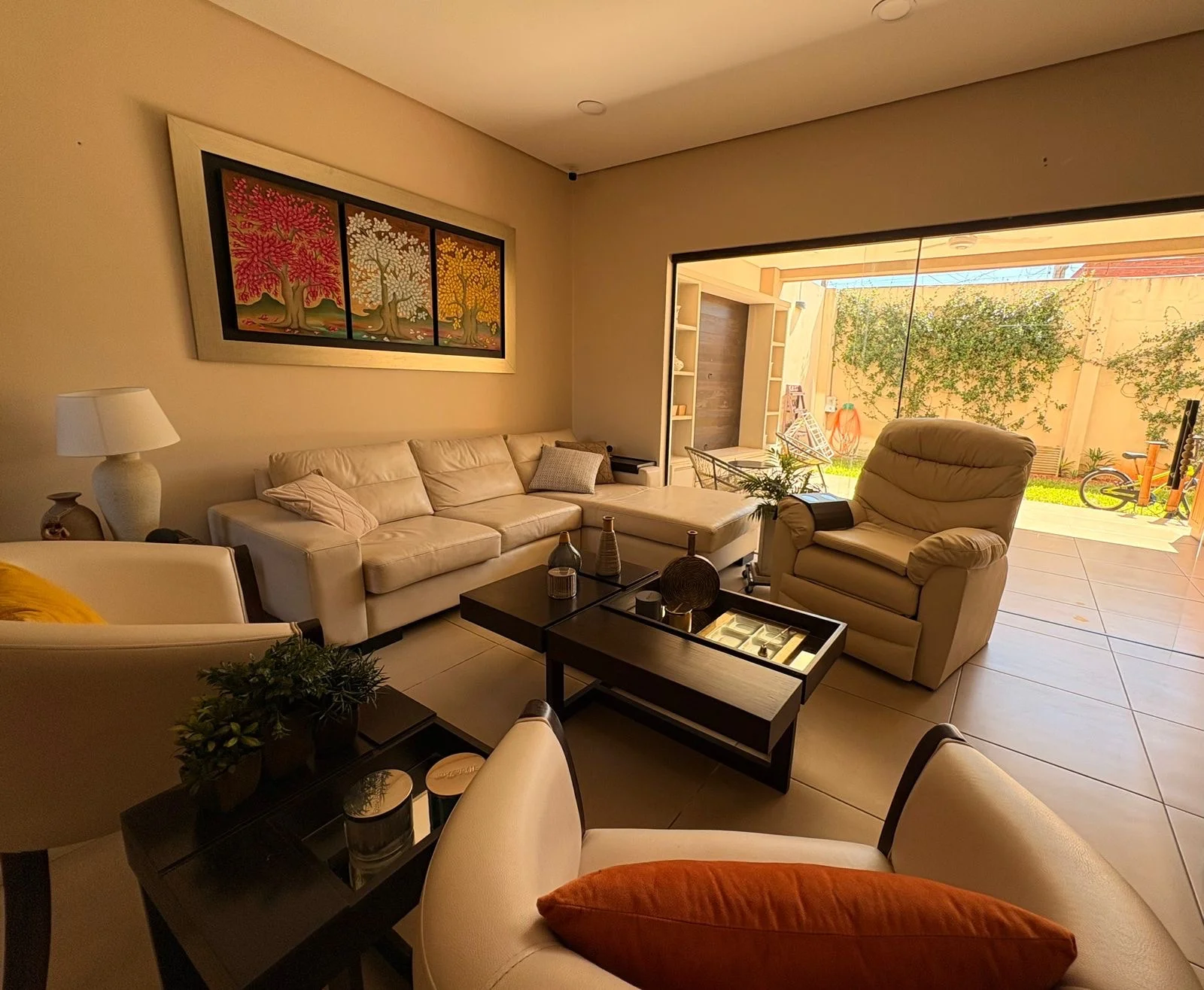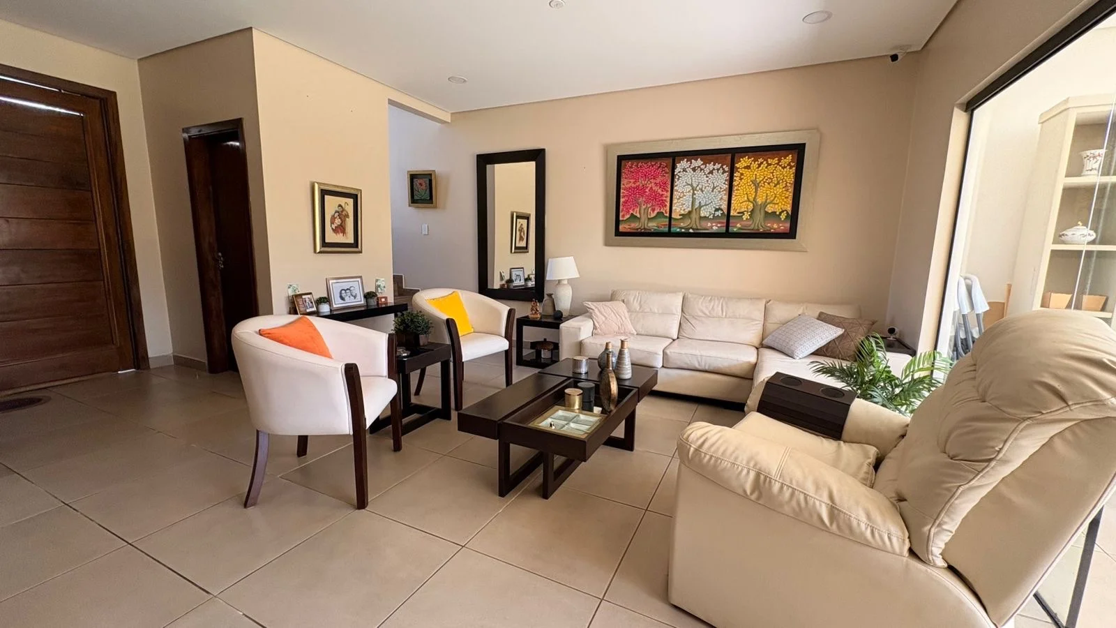 Acogedor estar familiar, 3 habitaciones (una en suite con vestidor) y dos dormitorios que comparten baño.