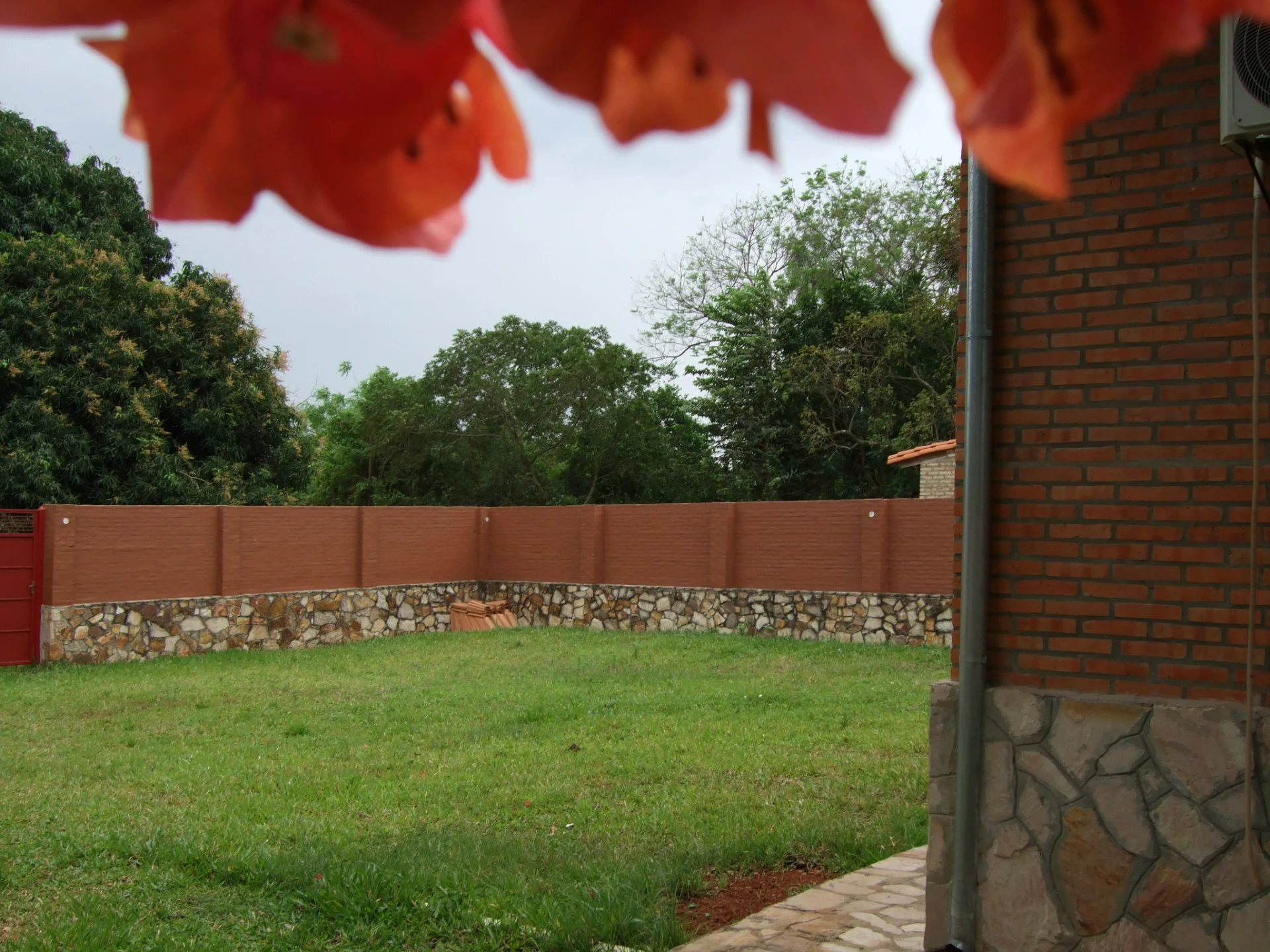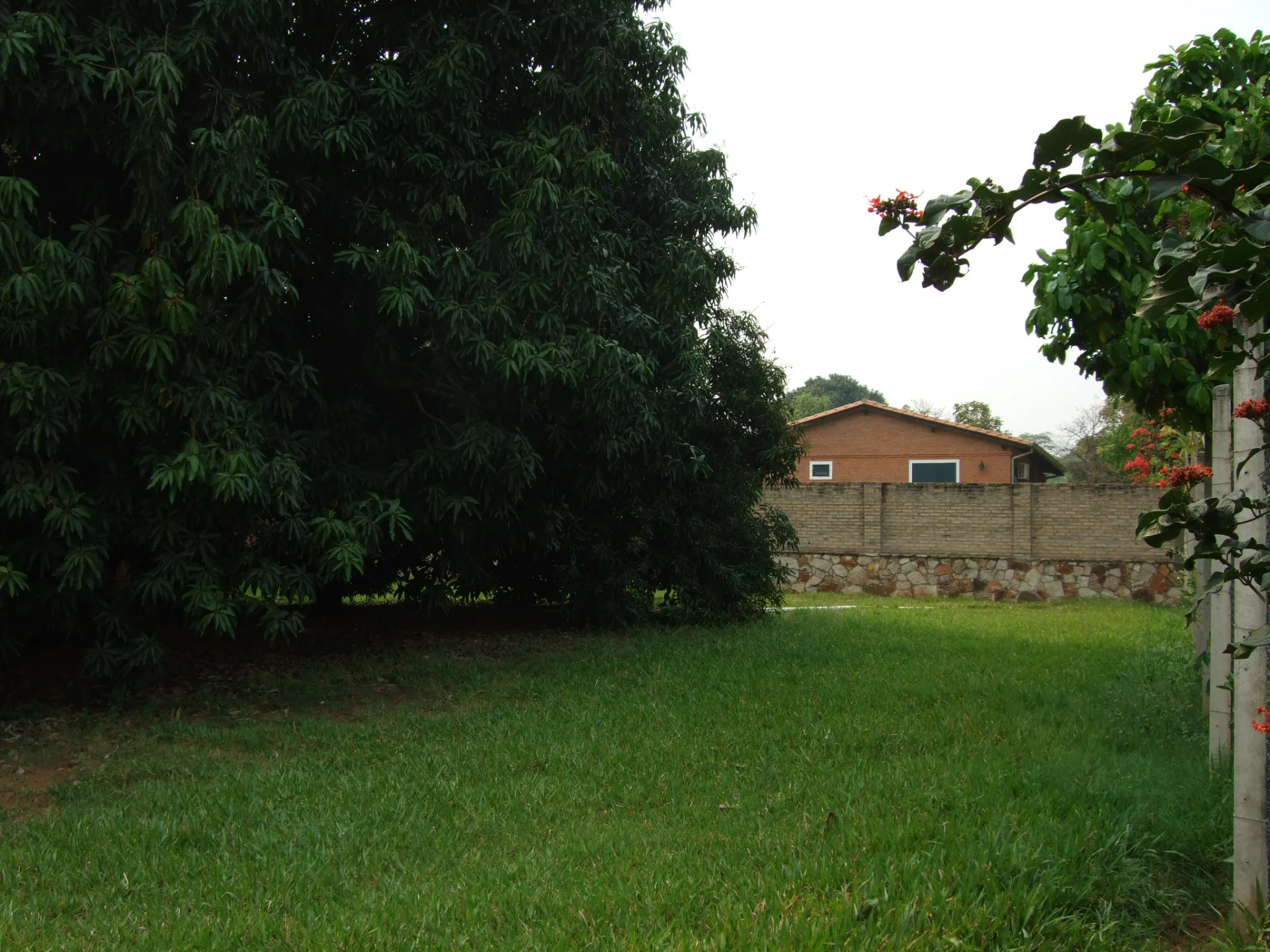 Amplio patio, con árboles de mango.