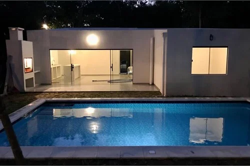 EN VENTA CASA A ESTRENAR EN SAN BERNARDINO ????Ubicada en el Barrio residencial Cristobal Colon a una cuadra de la Av Guillermo Neuman y a 2 minutos del centro, zona Ayres de Sanber y Anexo Lago Azul (detrás de la quinta de los Harrison) ????Dimensiones: -Terreno 360 m2 -Construcción 110 m2 ????Características: -Entrada para dos vehículos -Porton deslizante -Sala y cocina/comedor integrado con isla de porcelanato -Tres habitaciones, una en suite -Baño social familiar -Termocalefon -Quincho -Piscina de 8 x 4 mts de 45.000 lts -Amplio patio arbolado -Techo termoacústico -Iluminación led en toda la casa -Ande y Essap Título listo para transferir ????Precio: ***Gs ????https://maps.app.goo.gl/45QeD3bQyqUhcXGw6
