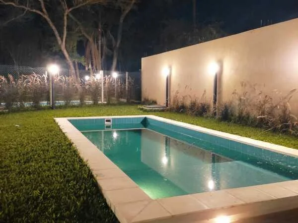 BAÑO QUINCHO CON DUCHA, CON TERMOCALEFÓN PISCINA 8X3, CON CONTROL DE MANDO PARA LUCES Y ACCESORIOS PARA LA LIMPIEZA DORMITORIO DE SERVICIO BIEN AMPLIO BAÑO DE SERVICIO CON TERMOCALEFÓN LAVADERO CON MESADA DE GRANITO COLOR VERDE OVATUVA (NEGRO) AMPLIO PATIO CON JARDIN PORTÓN VEHÍCULAR CORRIDIZO CON MOTOR CERRAMIENTO PERIMETRAL