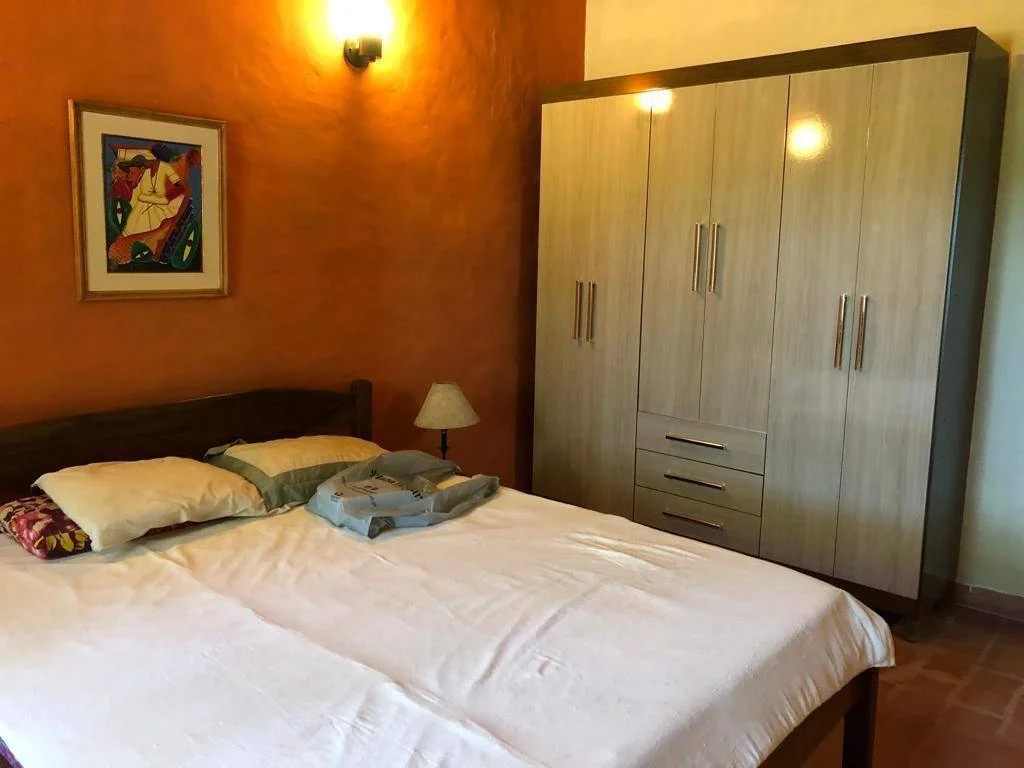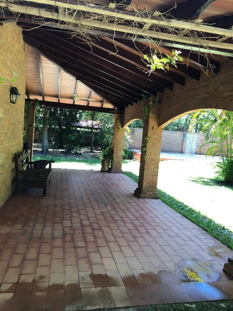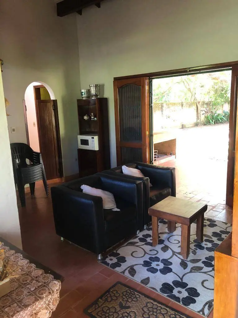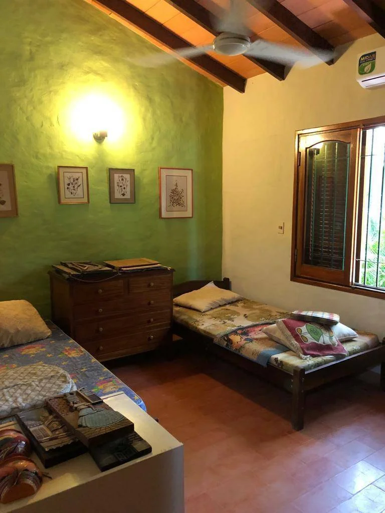 La residencia cuenta con un dormitorio principal y una habitación adicional, ambas equipadas con aire acondicionado y ventiladores de techo para garantizar un ambiente agradable. Disfrute de un amplio corredor con parrilla integrada, ideal para reuniones, complementado por una elegante mesada de madera y otra de piedra en el patio. El extenso patio es un verdadero oasis, con una refrescante piscina, un práctico depósito y un baño exterior. Parte del mobiliario está incluido, facilitando una mudanza sin complicaciones.