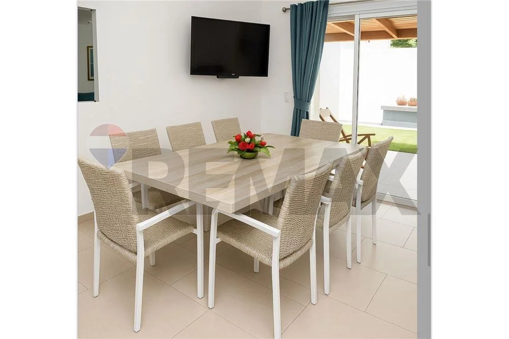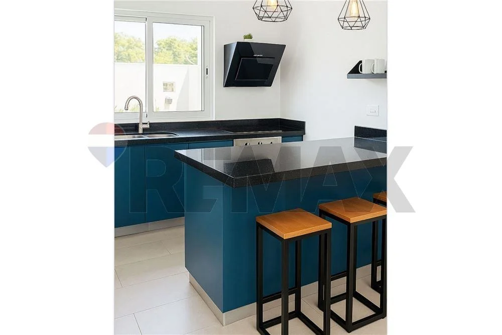 La unidad cuenta con un quincho con parrilla y jardín privado con piscina, integrados a una sala de estar luminosa y una cocina totalmente equipada.