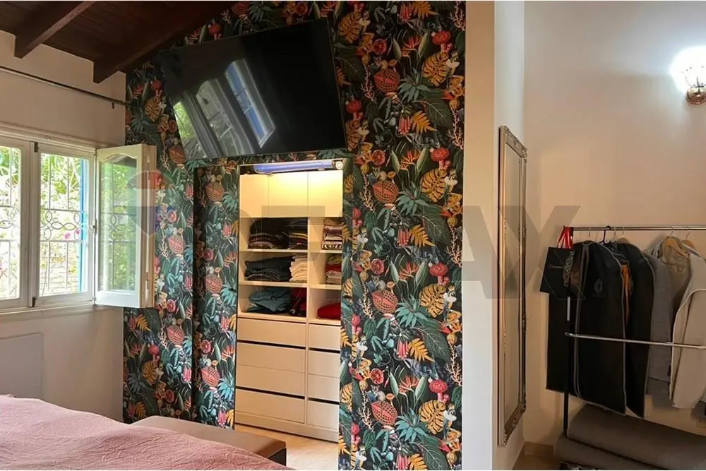 Habitación de huéspedes con altillo utilizado como oficina y kitchenette propia.