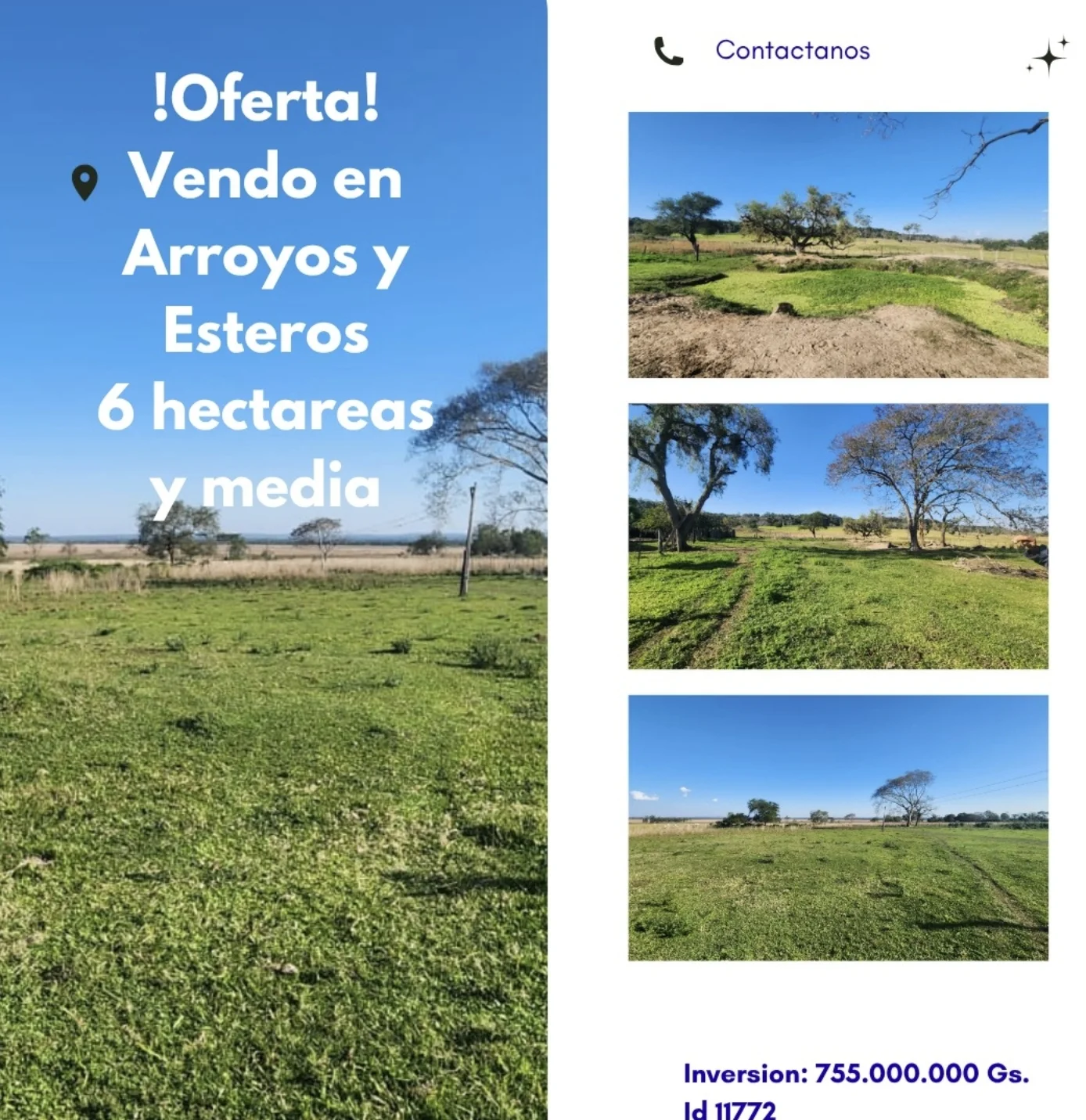 ???? ¡OPORTUNIDAD! OFERTA! VENDO 6 HECTÁREAS Y MEDIA EN ARROYOS Y ESTEROS – ZONA ALTA Y CON GRAN POTENCIAL ????