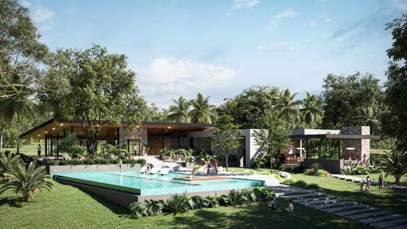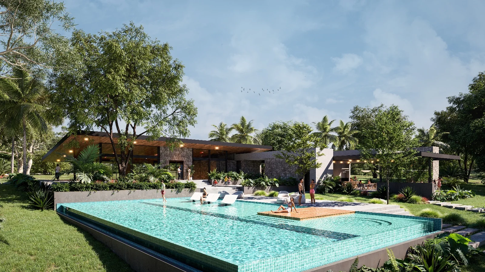 - Club House con piscina y áreas sociales.