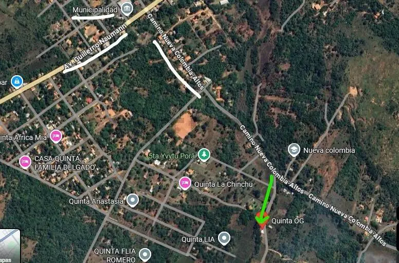 Vendo un Terreno ideal para Casa quinta, en la ciudad de Nueva Colombia, solo a 200 metros de la ruta que va camino a Altos y un kilometro de la ruta que va a Loma Grande (Avda. Guillermo Neuman).