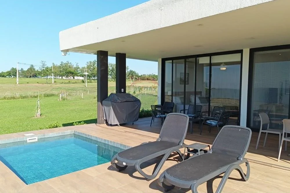 Presentamos una residencia premium de fin de semana que redefine el concepto de escape y sofisticación, ubicada en el exclusivo Paraqvaria Aero y Marina Country Club de Coronel Bogado. Un oasis de 200 m² con diseño minimalista y acabados de primera calidad, donde cada detalle ha sido pensado para su máximo confort y disfrute.