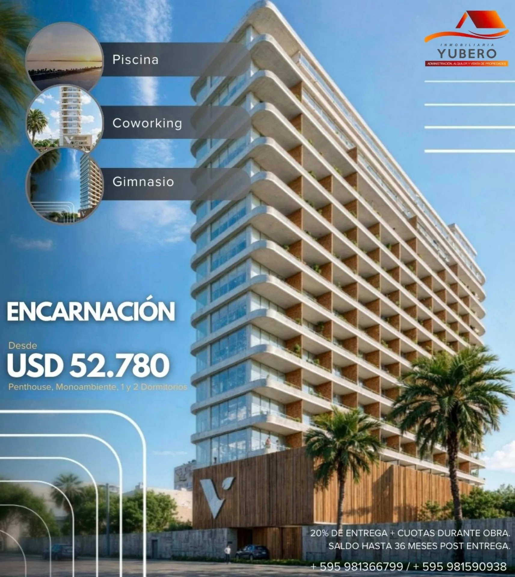 ¡Últimas unidades disponibles! No deje pasar la oportunidad de asegurar su futuro en Encarnación con un plan de financiación inigualable: entregue solo el 20%, pague cómodas cuotas durante la obra y el saldo restante hasta en 36 meses post-entrega. Ya sea para inversión o para disfrutar de un estilo de vida excepcional, este es el momento de adquirir su departamento.