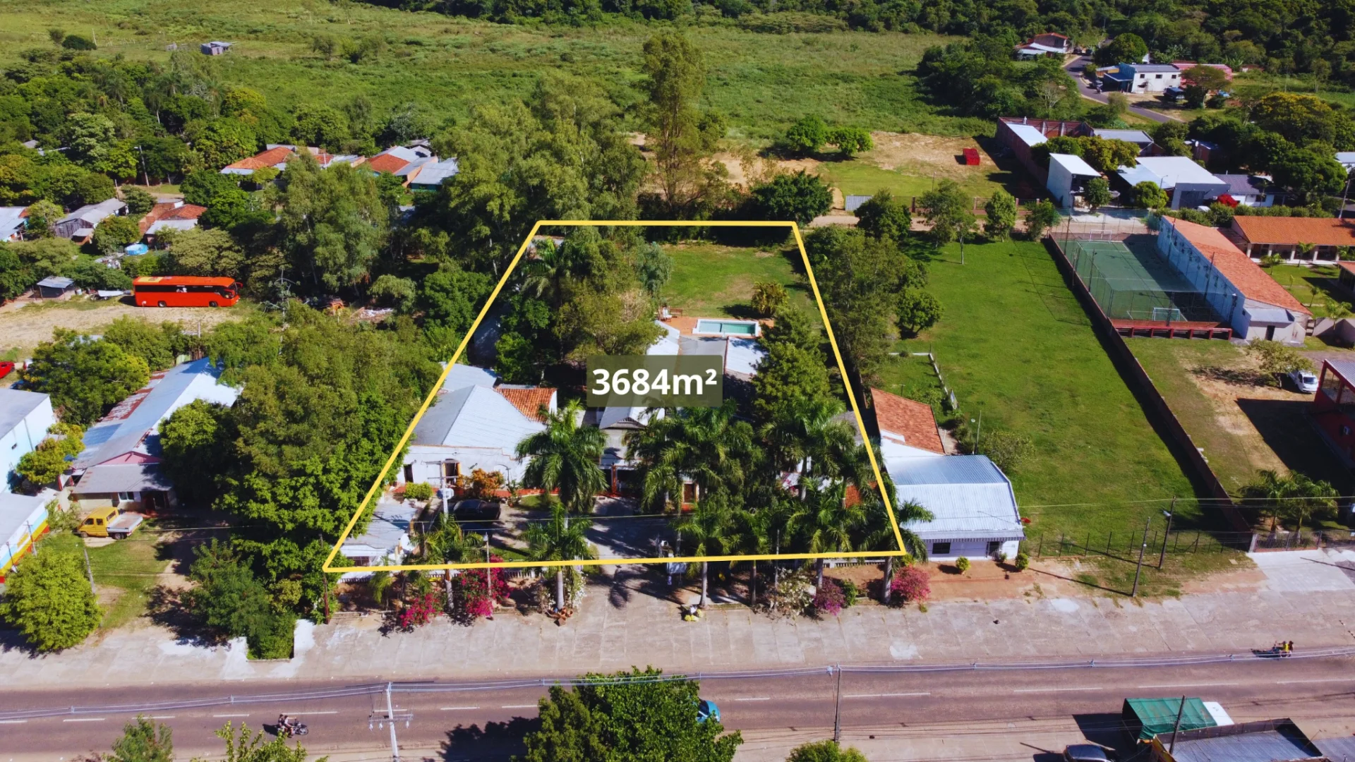 La propiedad tiene 50 m2 de frente por 73,68 de fondo, totalizando una superficie de 3.684,11 m2.-