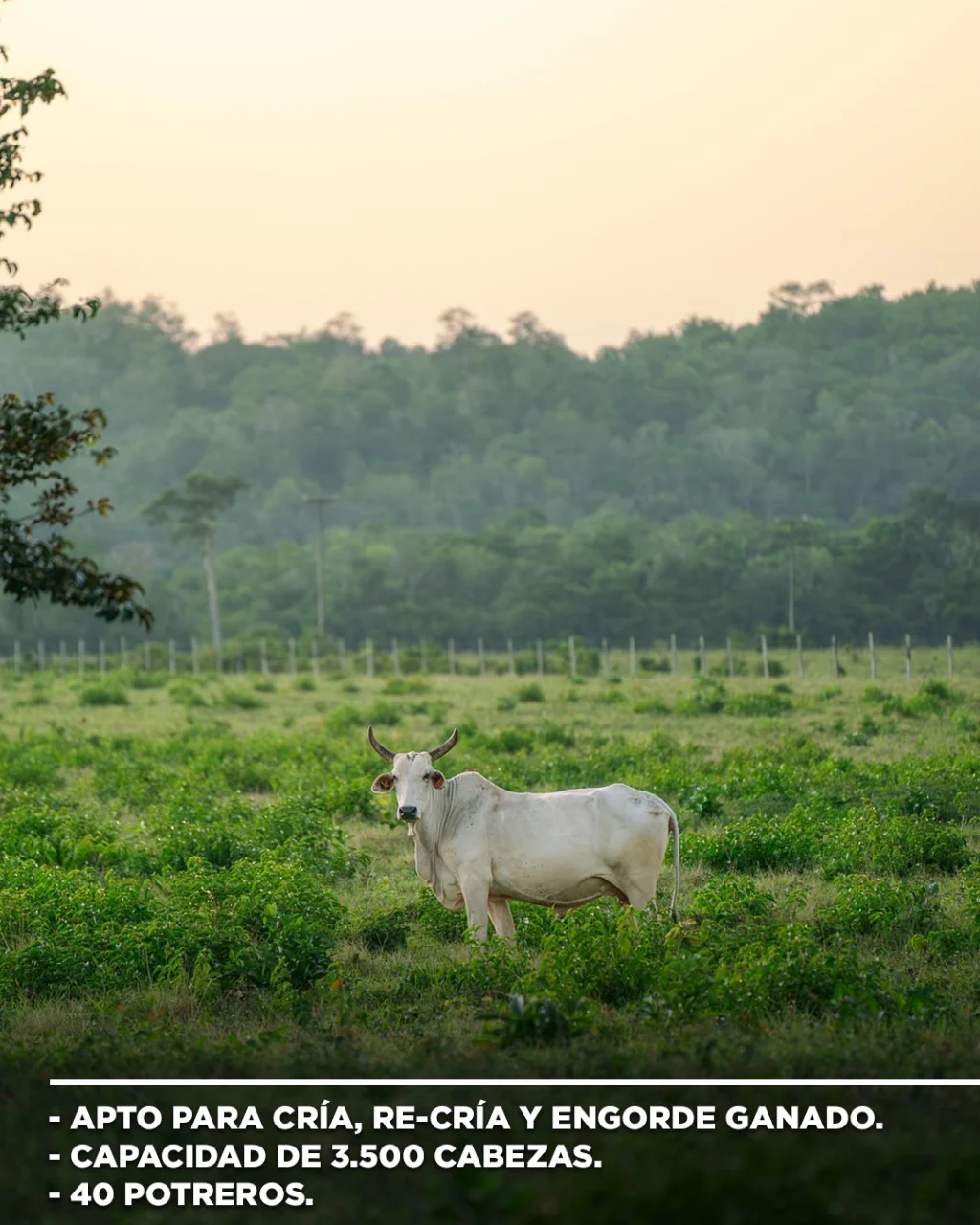????Con una estimación de la receptividad, con capacidad de carga hasta 3.500 cabezas de ganado vacuno.