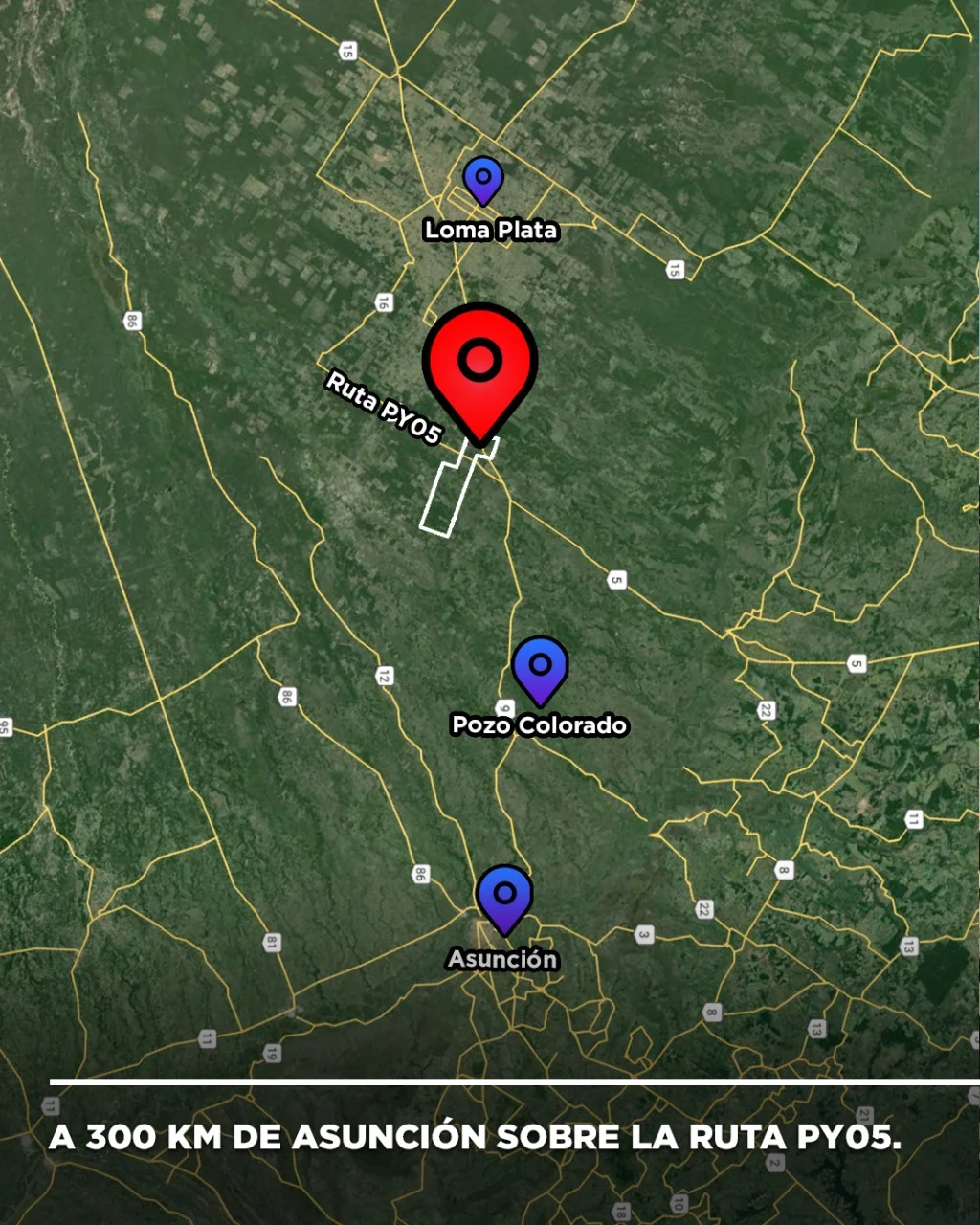 ???????? ???????????????????? se encuentra a 300 Km de Asunción, sobre la Ruta PY05 “Gral. Bernardino Caballero” en el distrito de Villa Hayes, correspondiente al Departamento de Presidente Hayes.