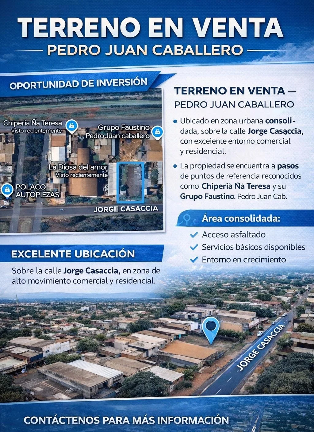 Ubicado en zona urbana consolidada, sobre la calle Jorge Casaccia, con excelente entorno comercial y residencial.