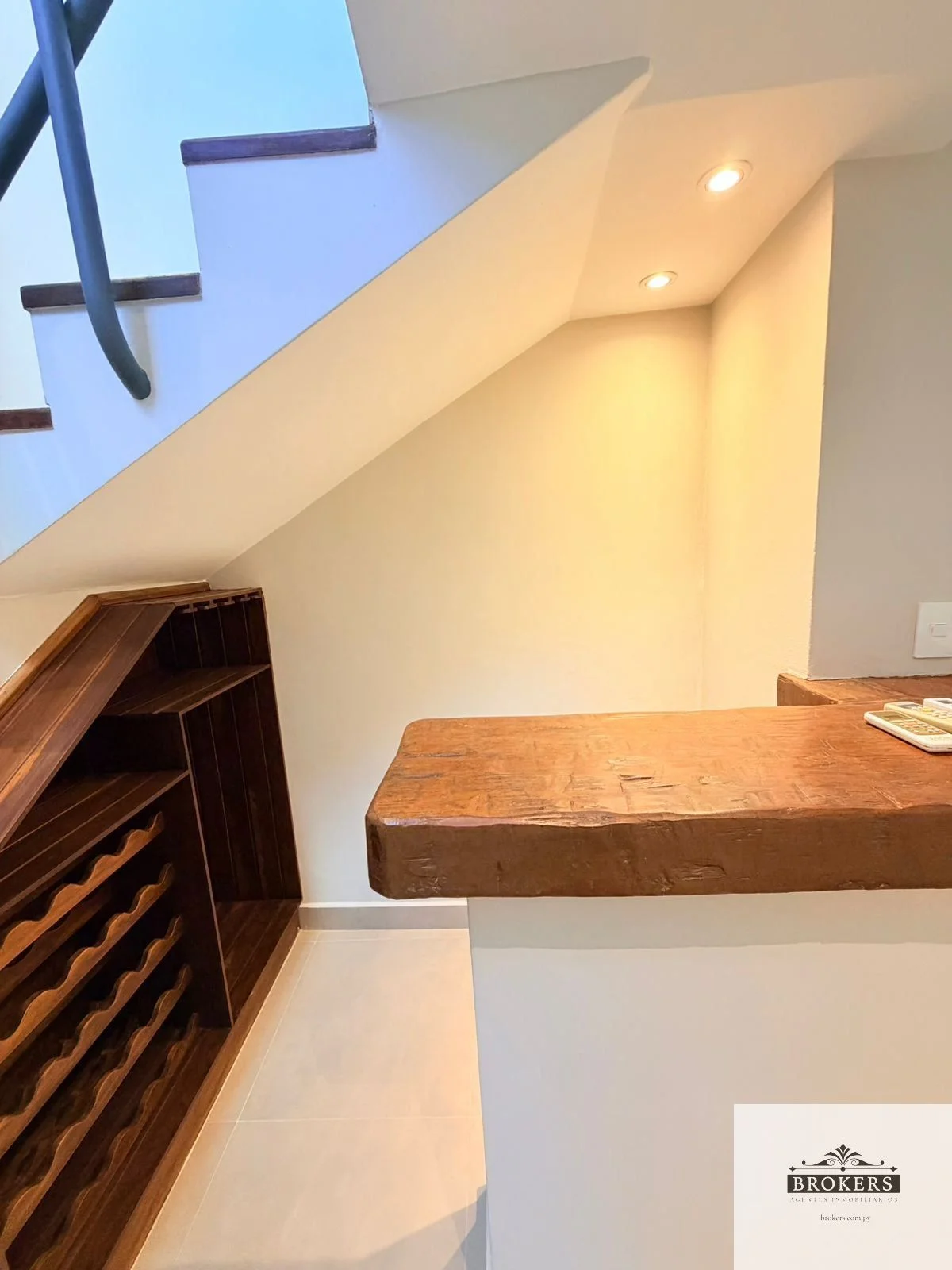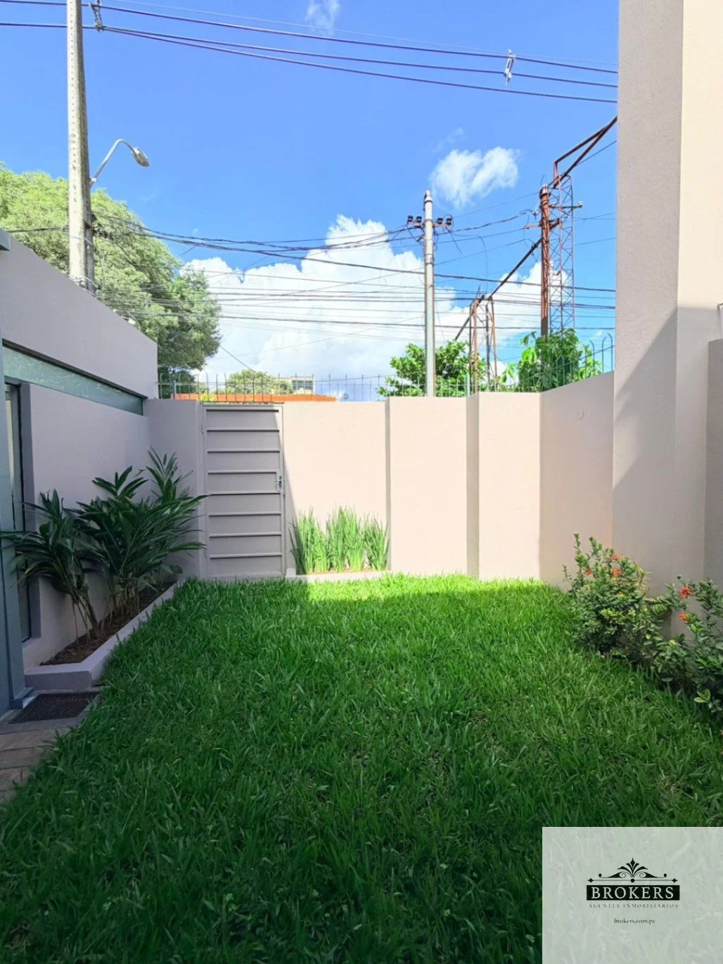 Planta baja: Garaje para dos vehículos con portón automático, living social con barcito integrado, aire luz, escritorio, baño social, comedor social con parrilla, patio con portón de acceso, cocina amoblada, área de servicio completa incluyendo lavadero, tendedero, dormitorio y baño.