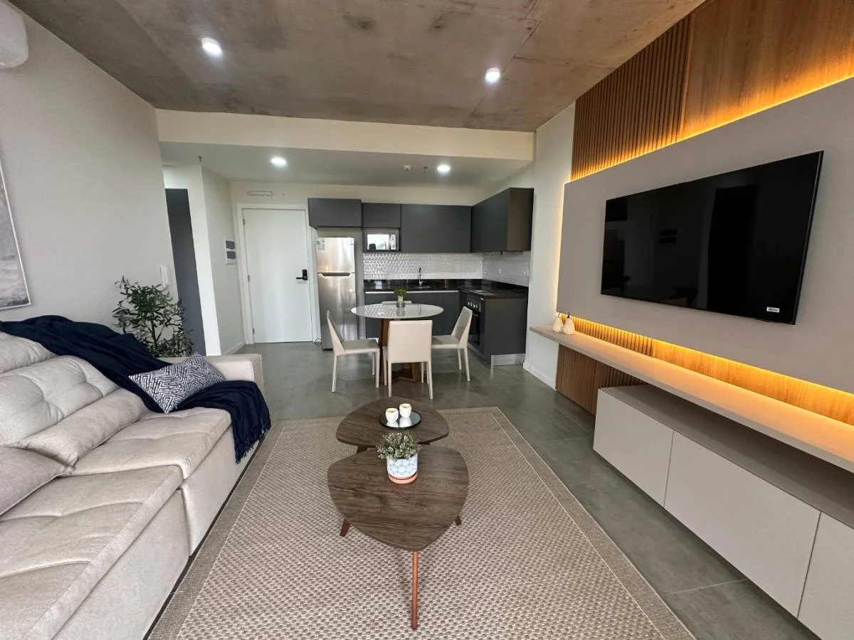 Sala cocina y comedor integrados con aire acondicionado (la cocina cuenta con horno, anafe y purificador)