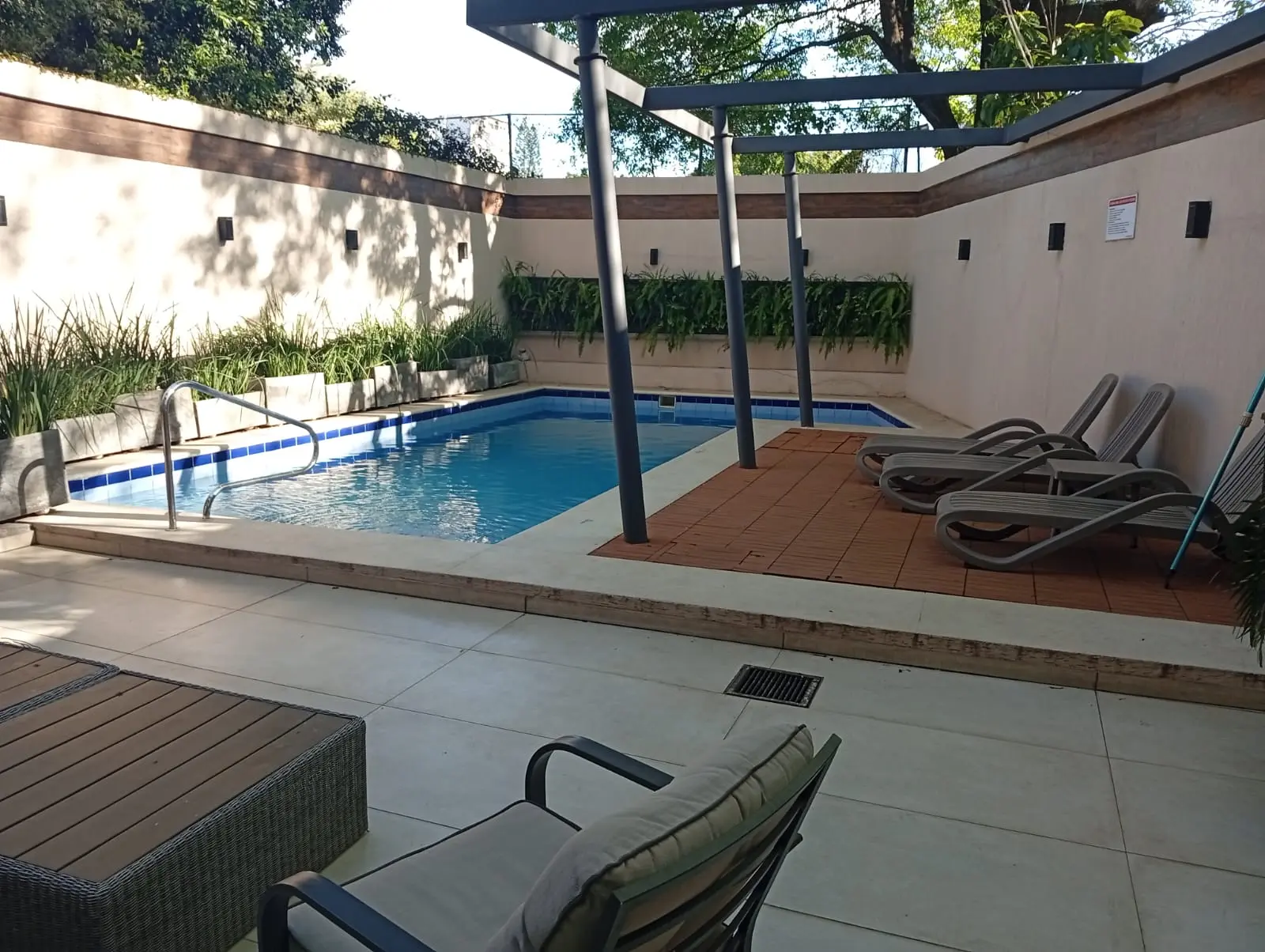 - piscina con deck y reposeras