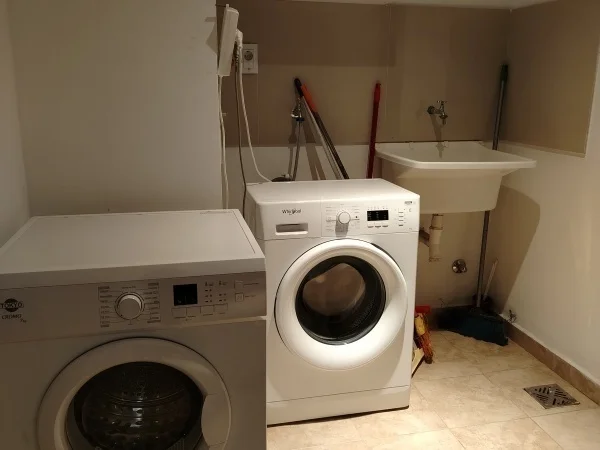 Área de lavadero totalmente equipada con lavarropas y secarropas automático.