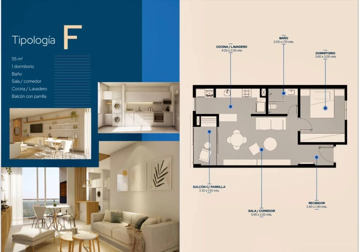 *Depto. equipado con rack de TV y estantes, gavetas de pared, desayunador y paneles de madera. Cortinas en el dormitorio y área social.