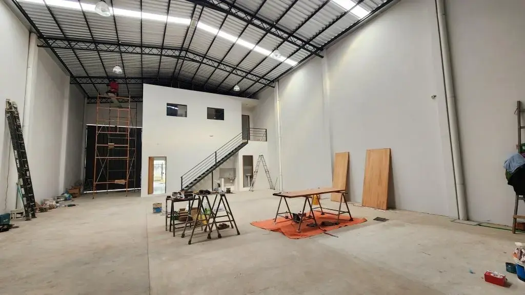 * PB: Estacionamiento, recepción, Ofic., baño, tinglado deposito, baño. PA: Ofic. amplia, kitchette y baño.