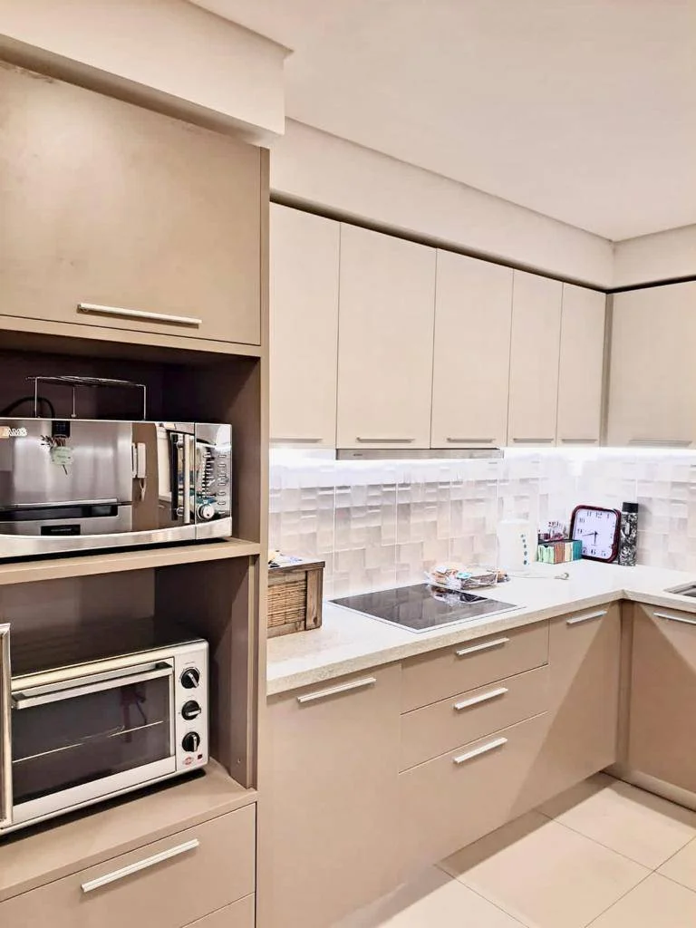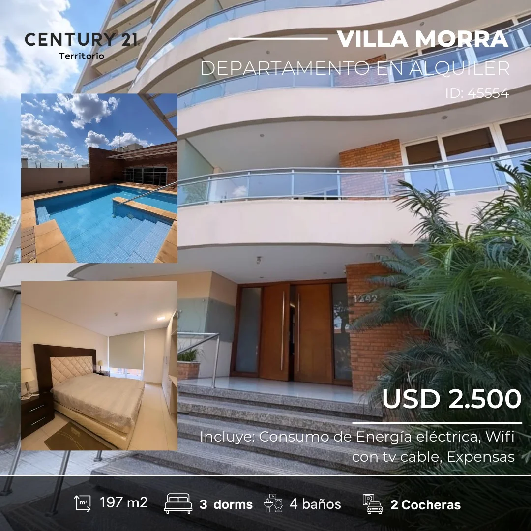 El departamento cuenta con tres habitaciones todas equipadas, aires acondicionados en todos los ambientes, sala, comedor, amplio balcón, cocina equipada con lavavajillas, horno, heladera, microondas lavarropas, cubiertos y vajillerias en general, área de servicios.