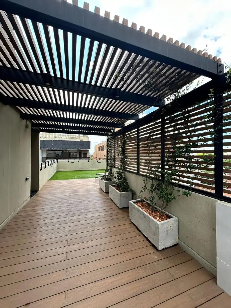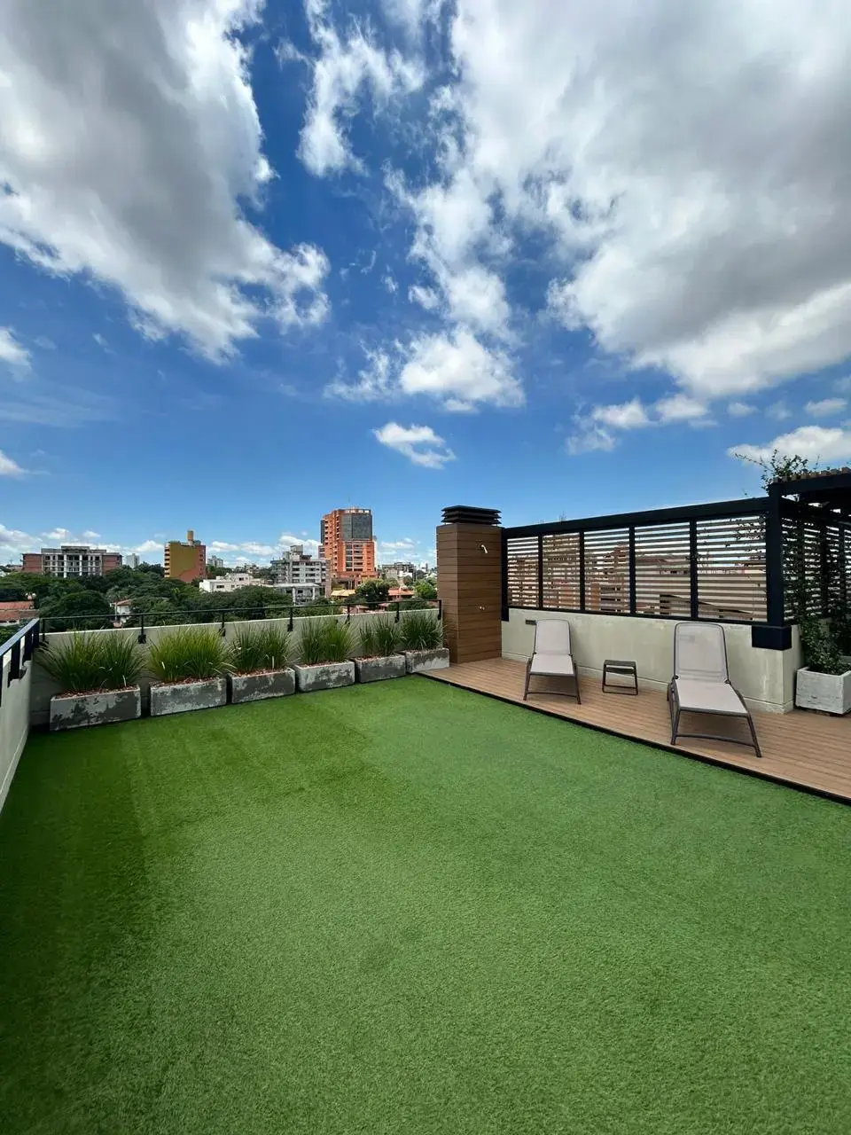 Amplia terraza con vista a la ciudad.