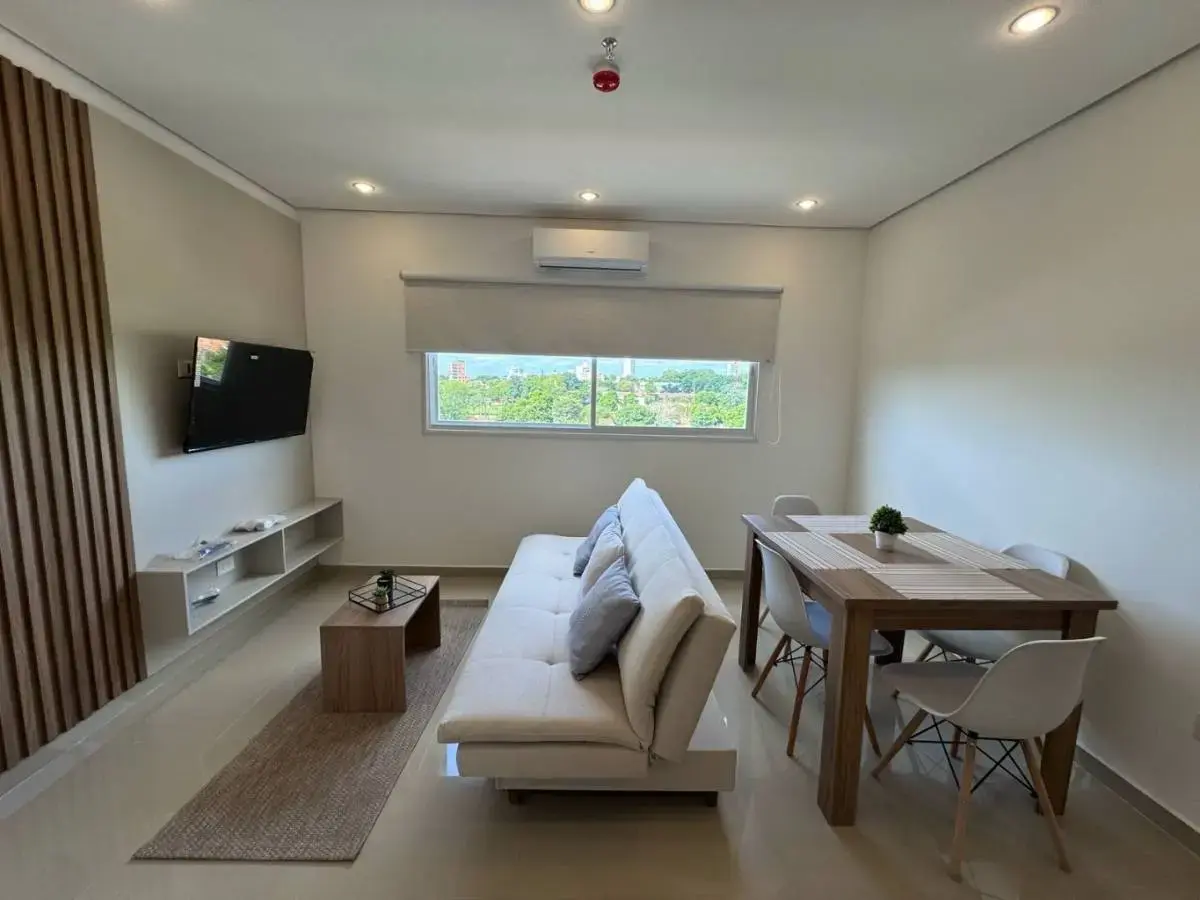 Departamento a estrenar en Las Mercedes – Asunción¡Listo para mudarte! Este moderno departamento amoblado y completamente equipado se encuentra en el 6.º piso D de un edificio nuevo, en el corazón del barrio Las Mercedes.
