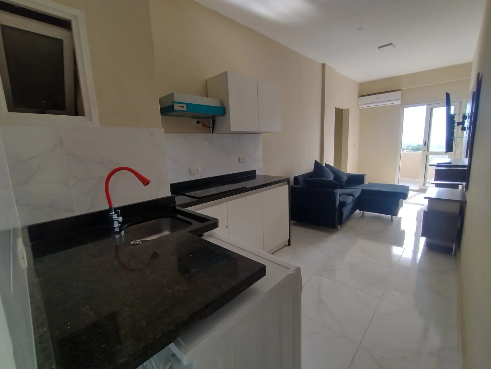 - Cocina amoblada y equipada con anafe y extractor.