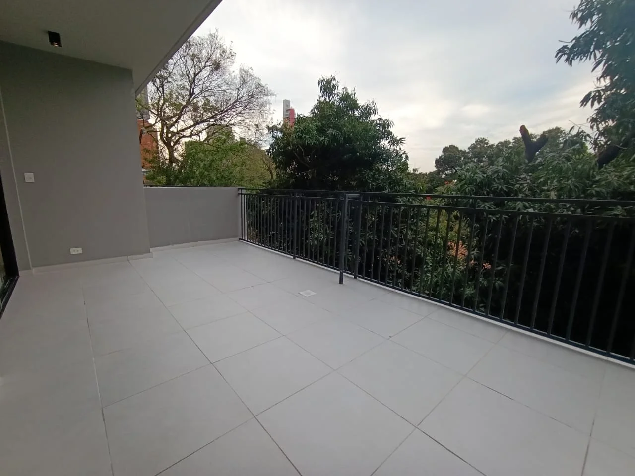 Balcón tipo terraza, amplio y luminoso