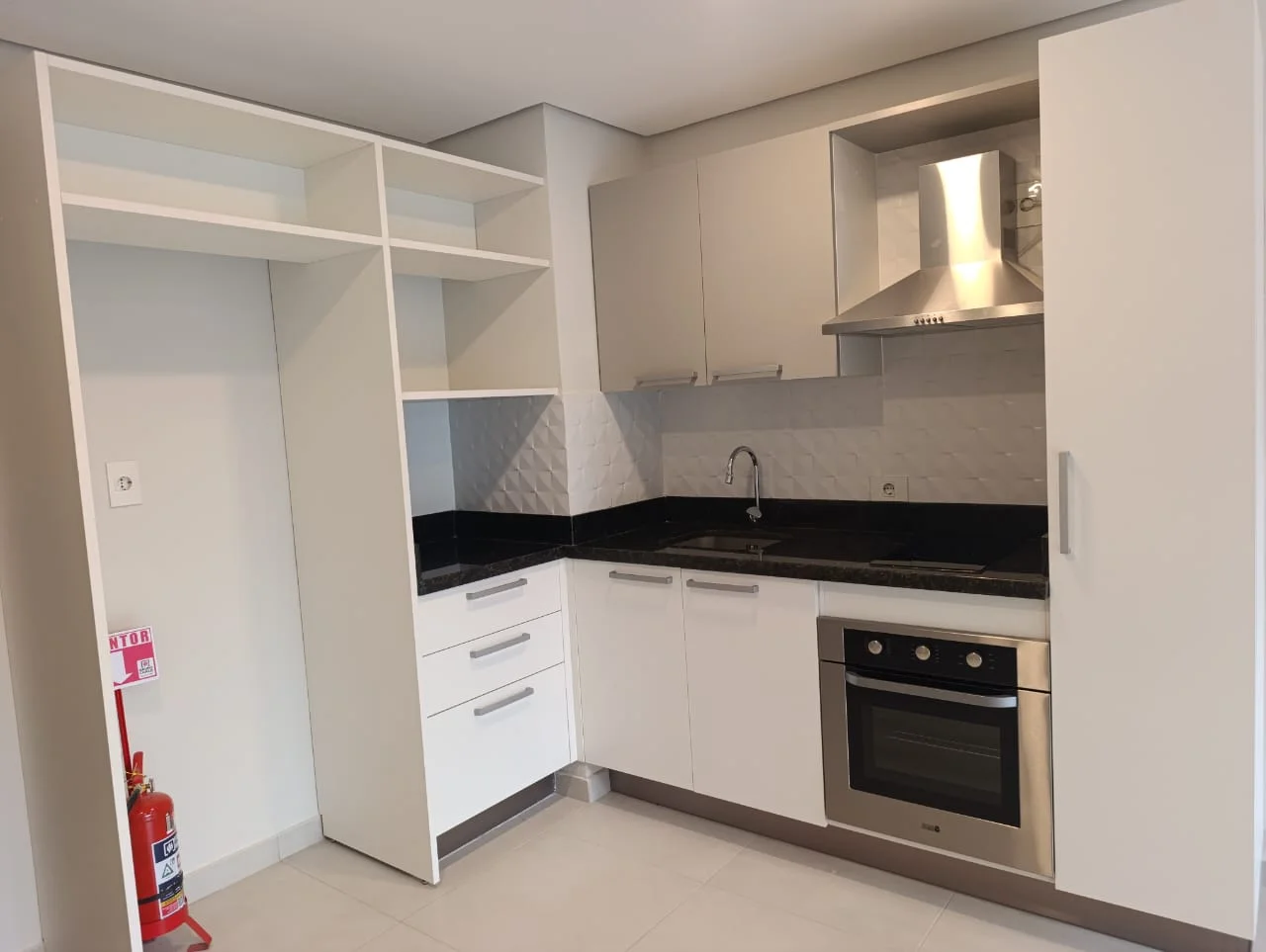 Cocina amoblada integrada con comedor/sala