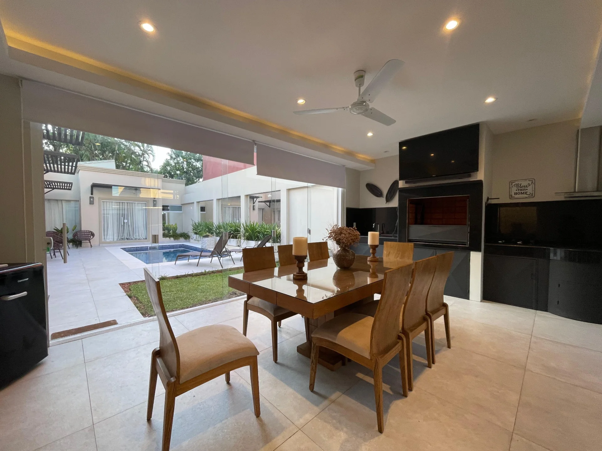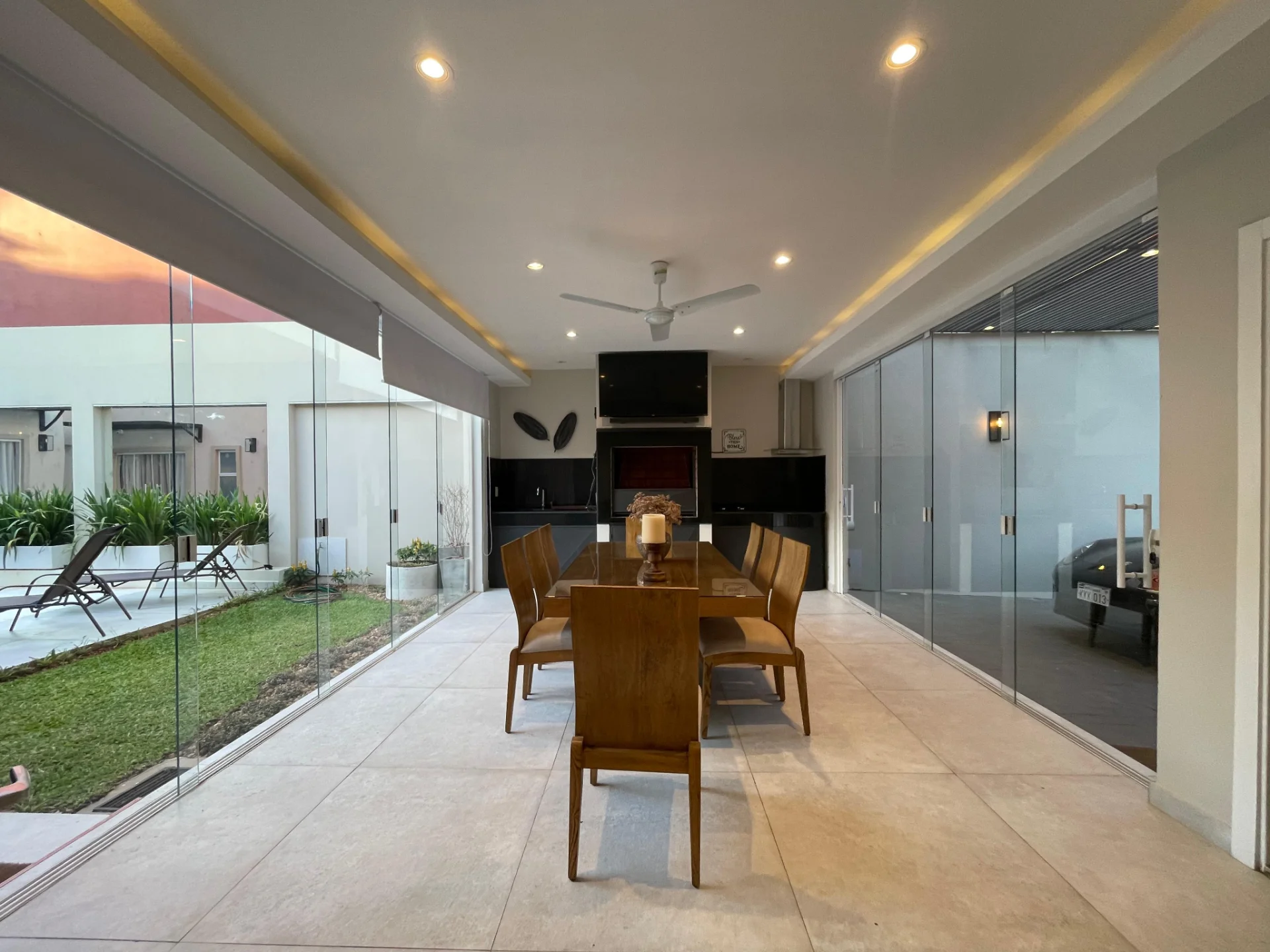 - 3 dormitorios en suite, living comedor, cocina integrada, baño social, quincho cerrado con parrilla, estar intimo, patio con piscina, garage para 2 vehículos.