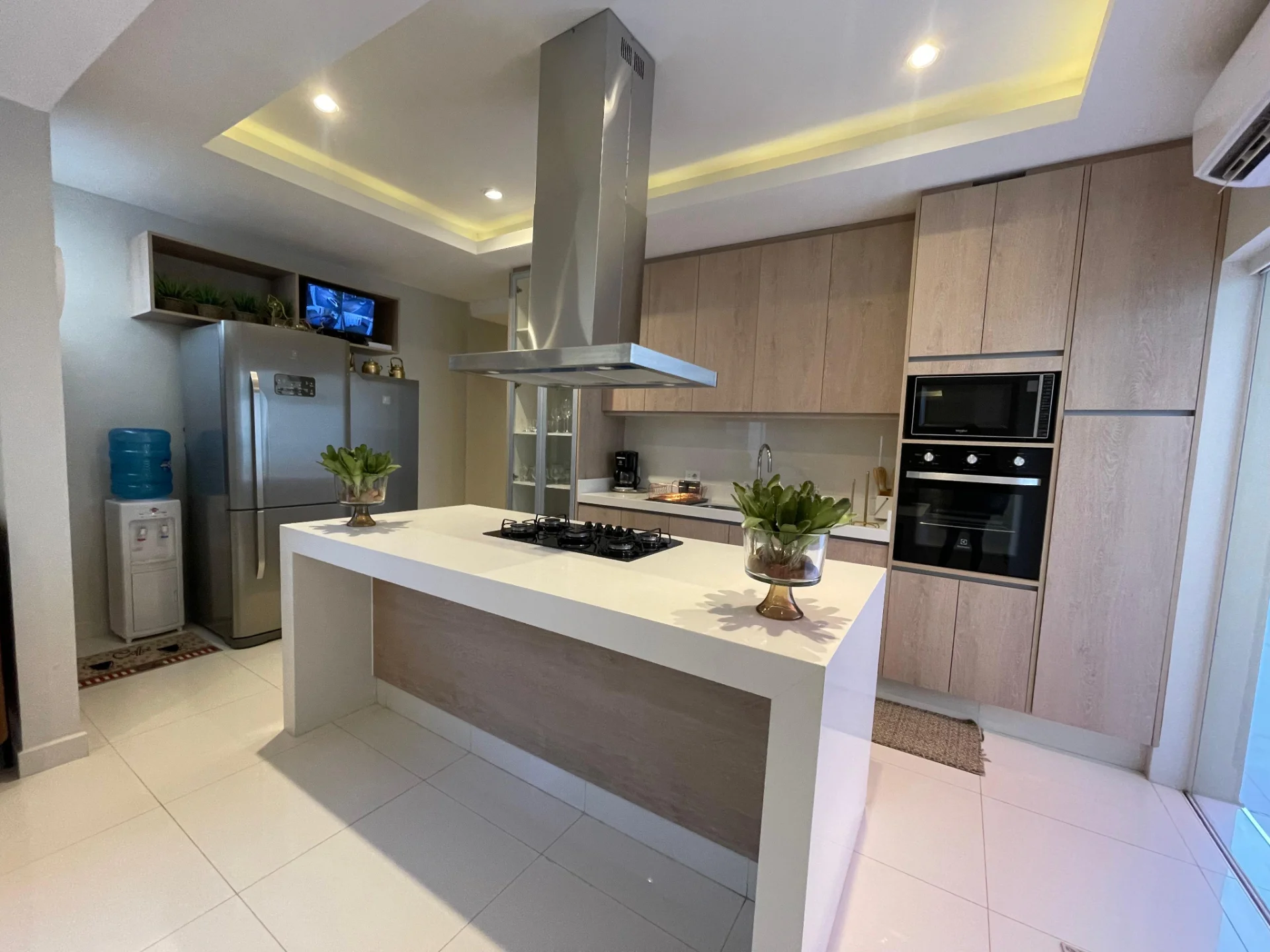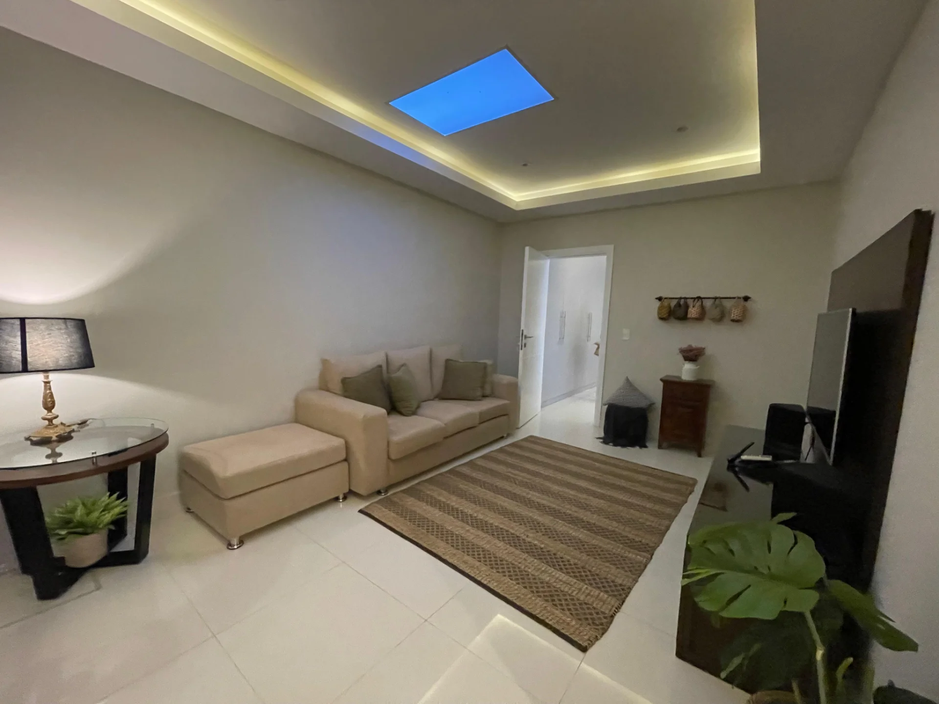 Con vajilla completa, electrodomésticos y televisores.