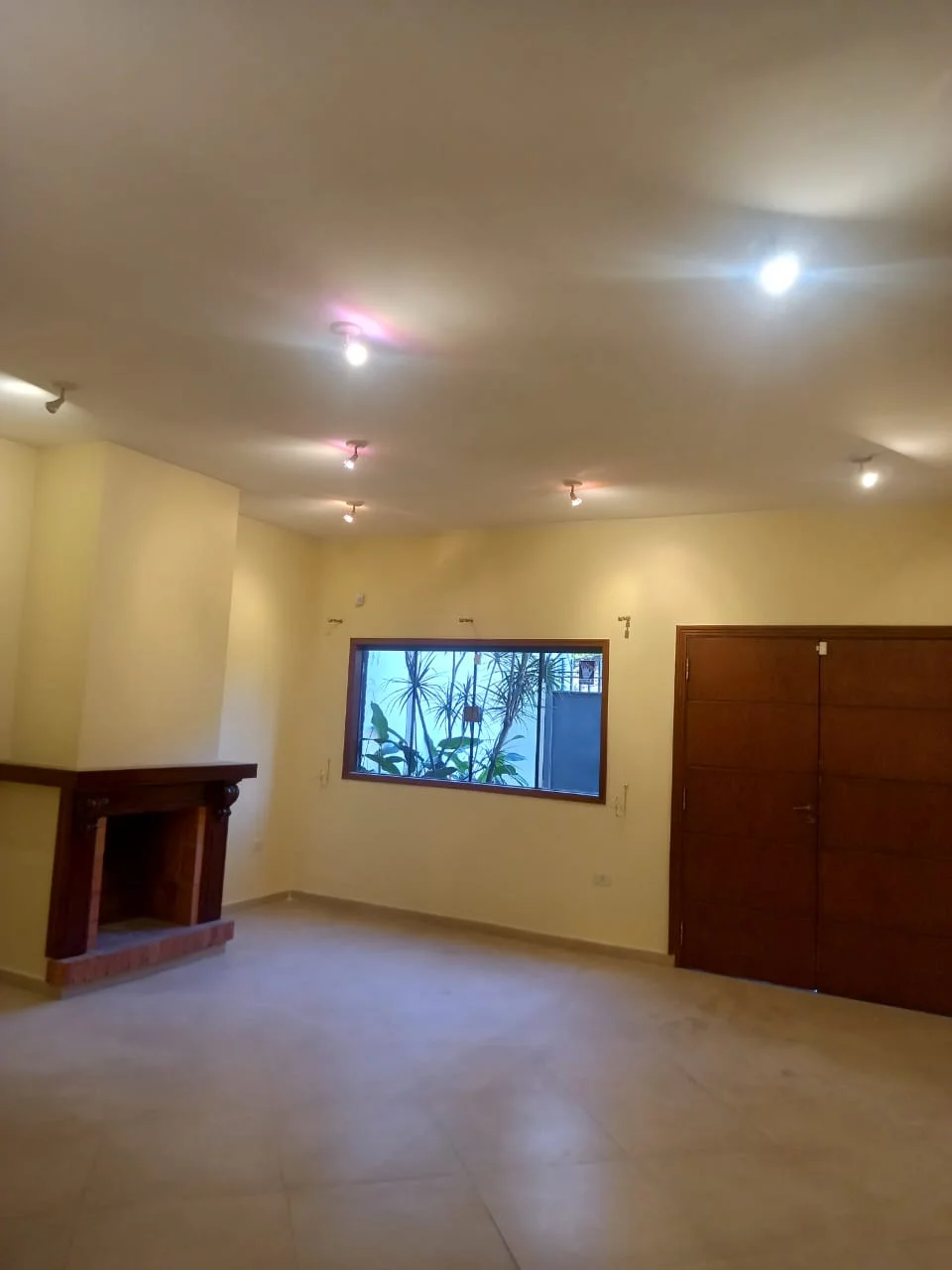 Amplia sala y comedor social con chimenea,baño social,sala para oficina con mueble para biblioteca