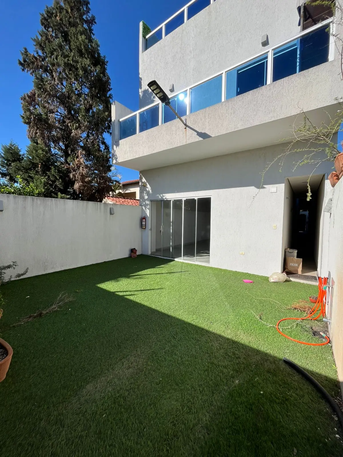 PB: cochera para 4 vehículos, entrada independiente, pequeño patio, cocina amoblada, sala.
