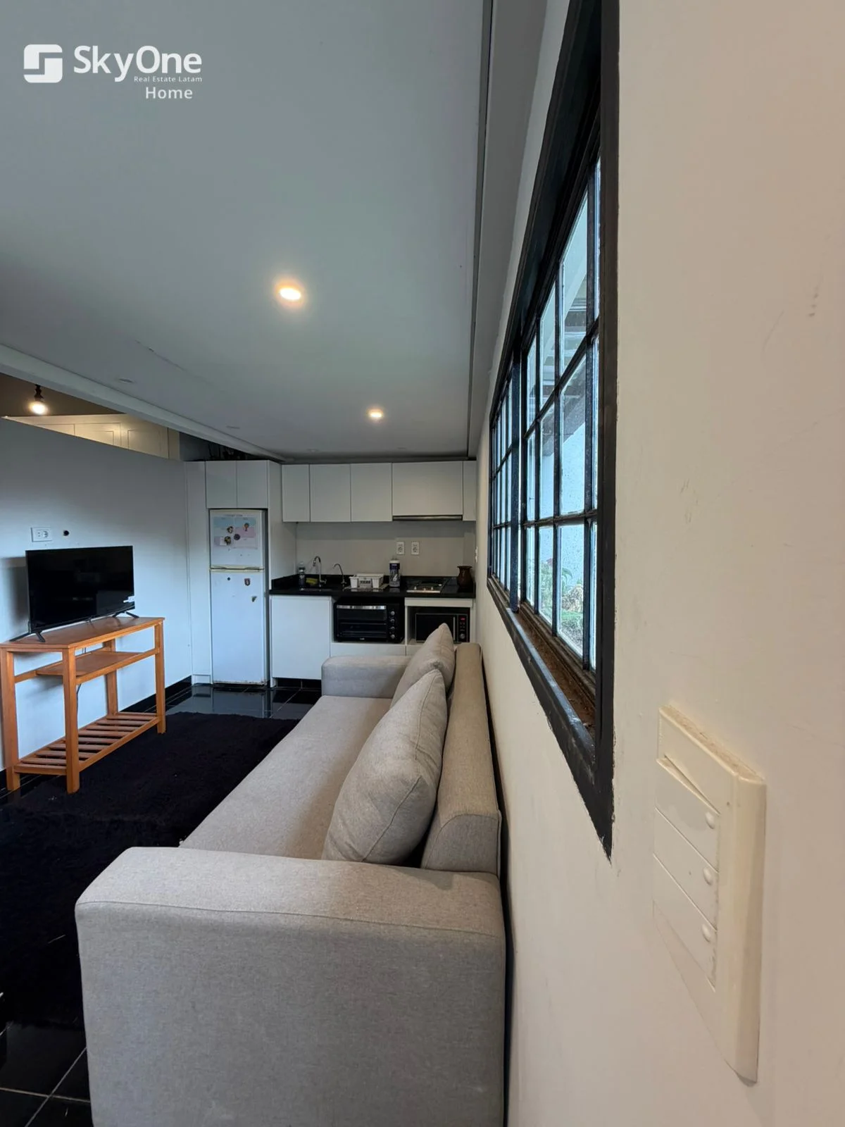 • Living, Cocina y Comedor Integrados con TV y Sofá.
