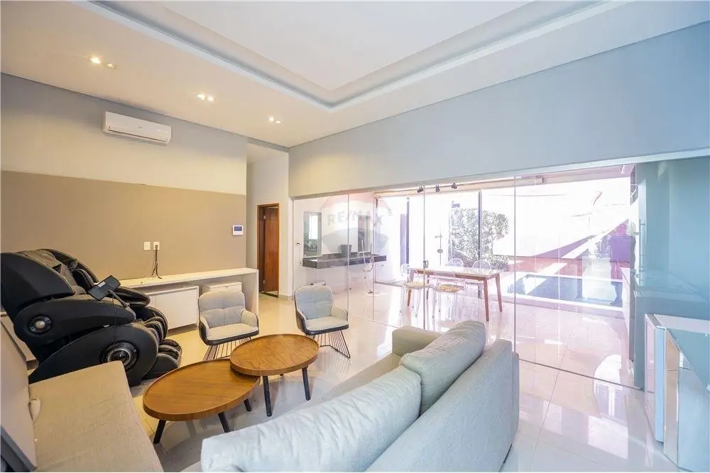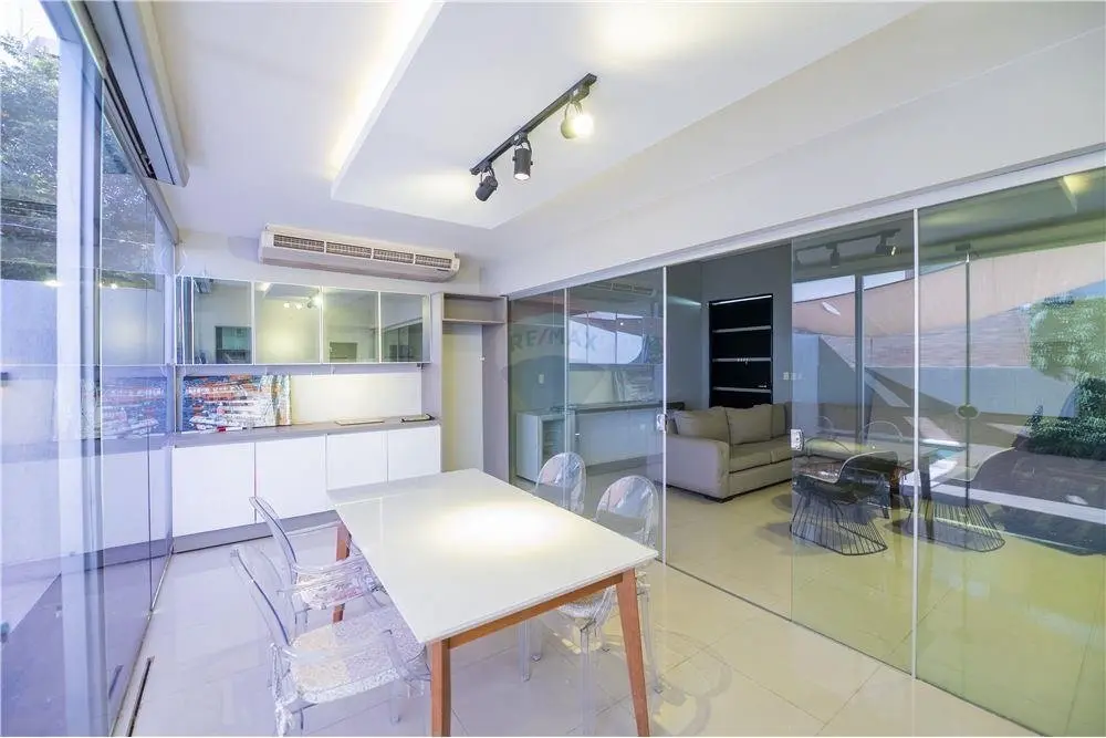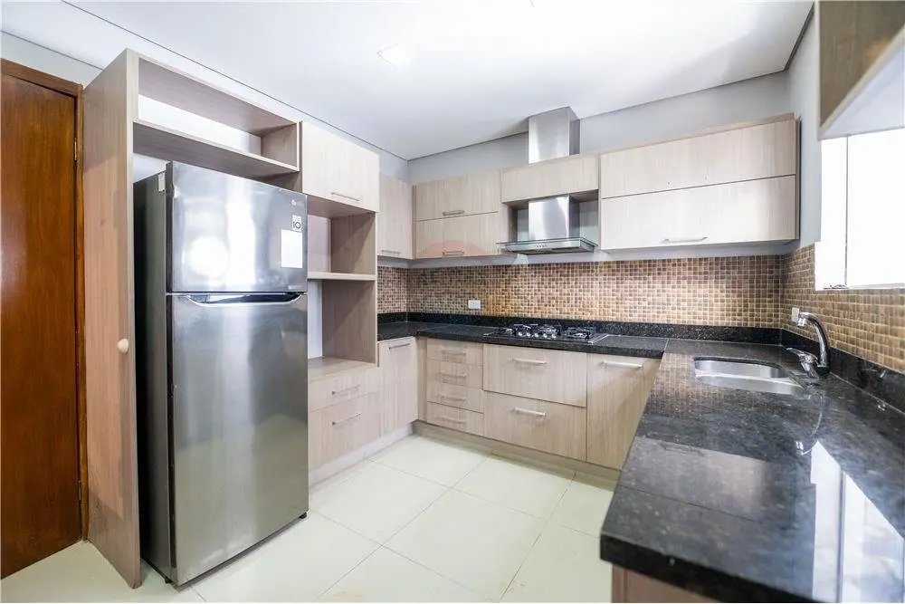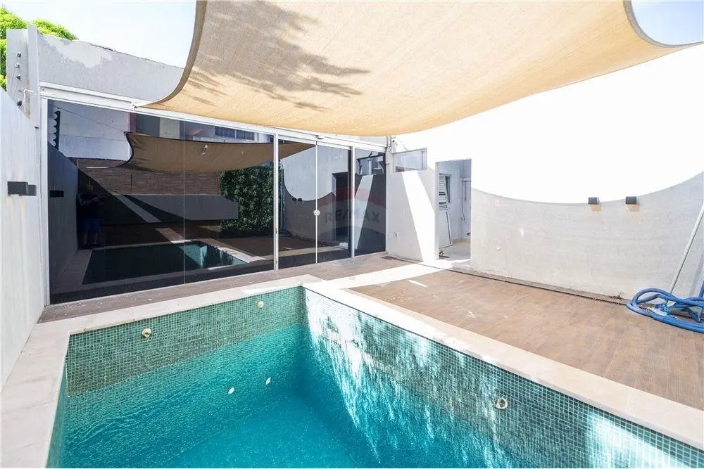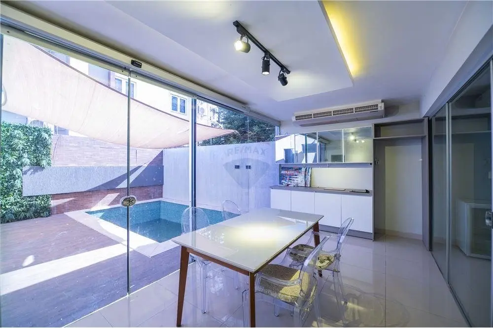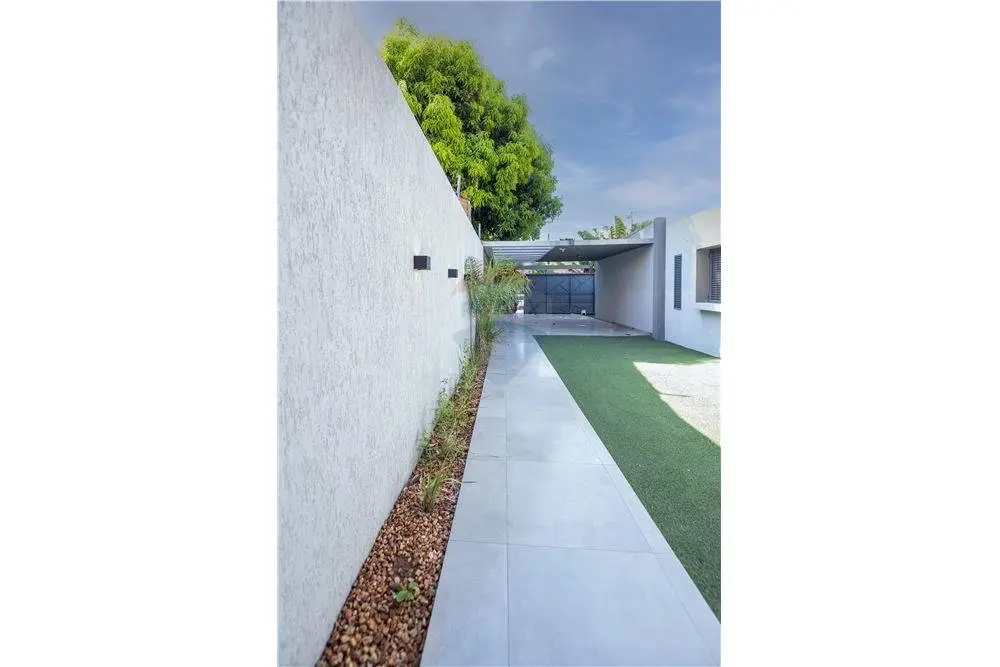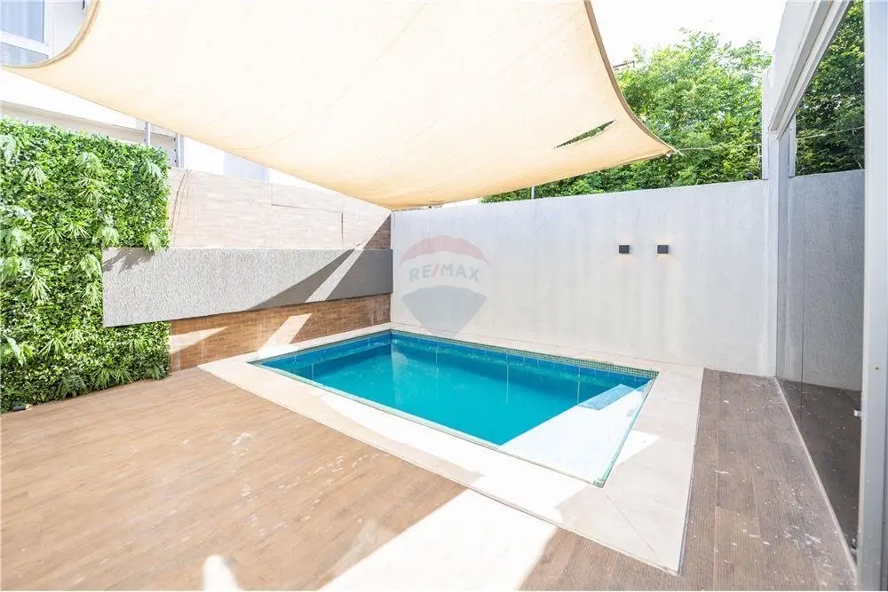 Estar social y principal Comedor climatizado Cocina amoblada Baño Social Habitación matrimonial en suite con vestidor 2 Dormitorios secundarios con baño familiar compartido Área de servicio con habitación y baño Lavadero Piscina Cochera para 3 vehículos